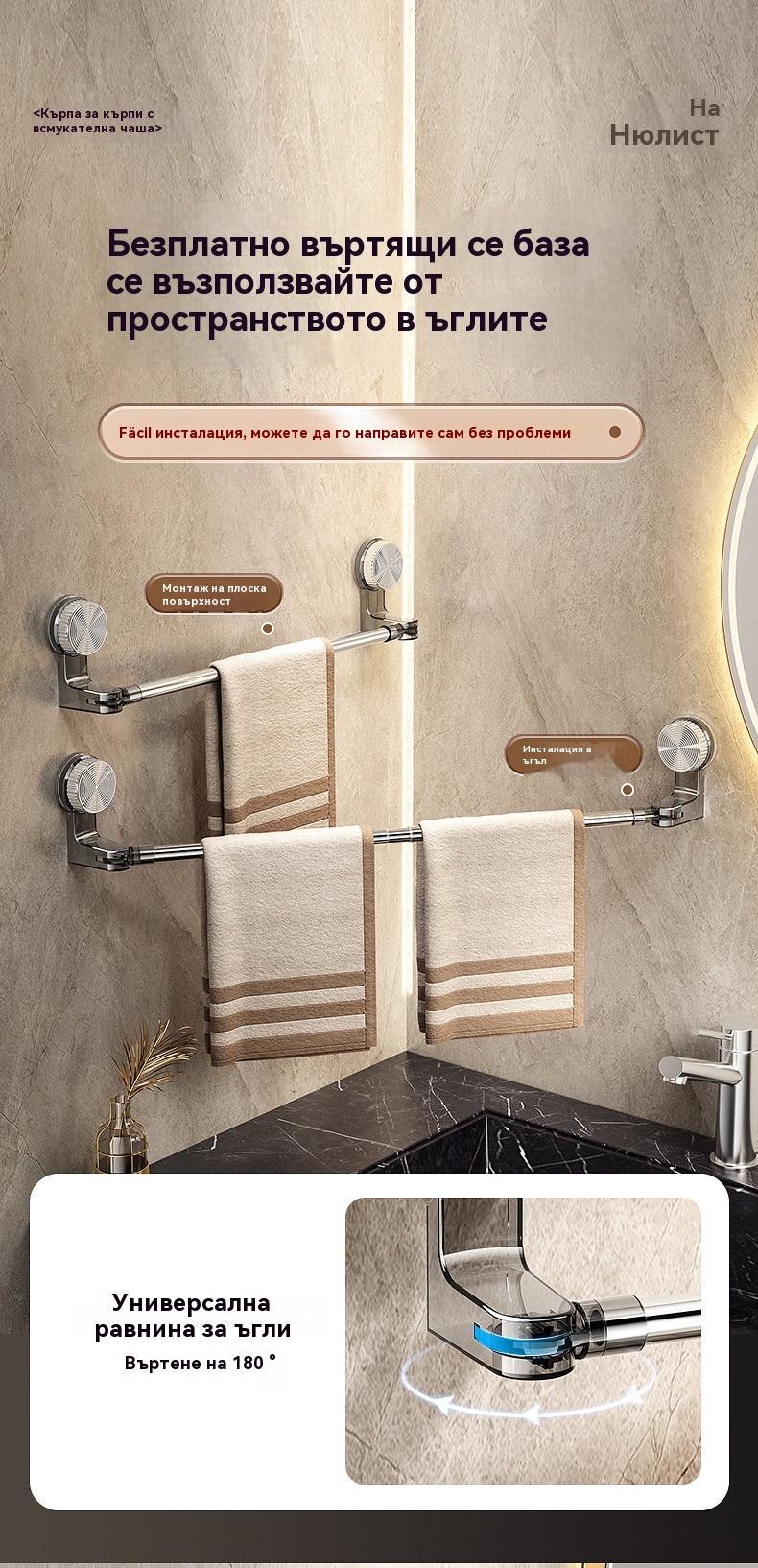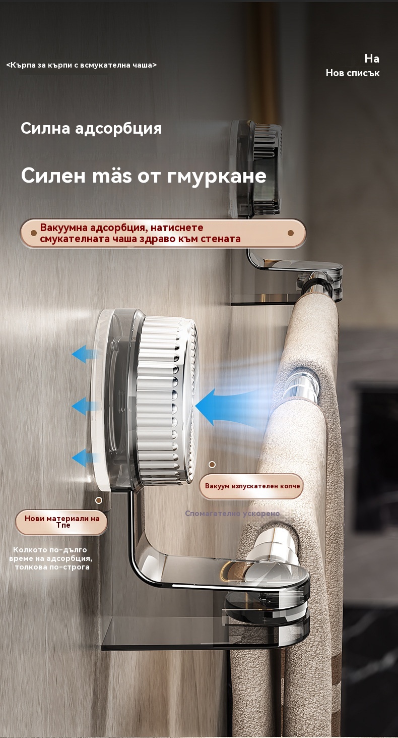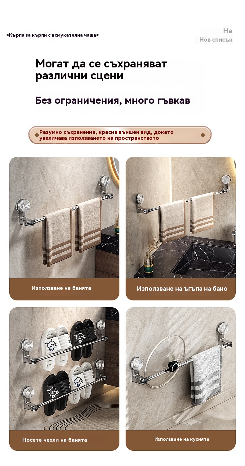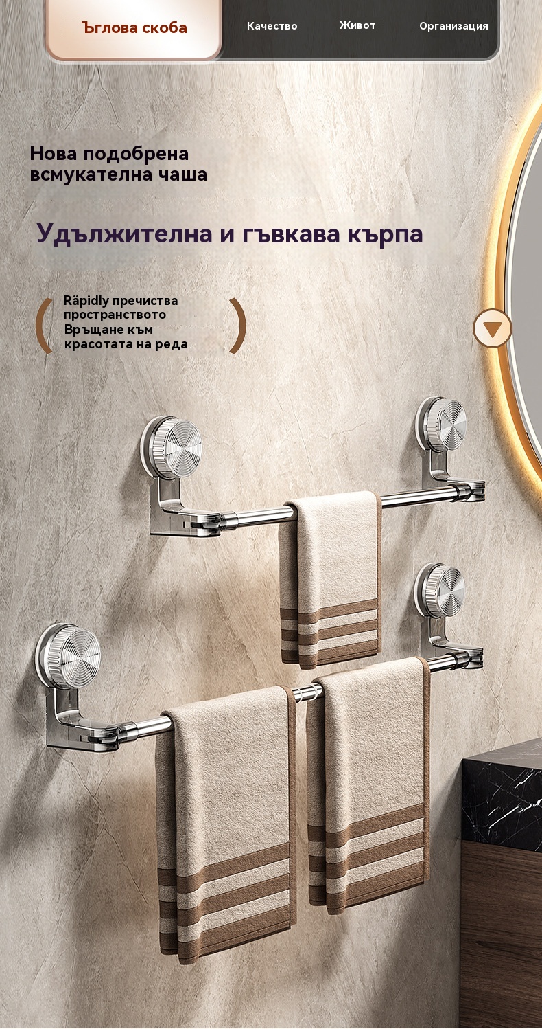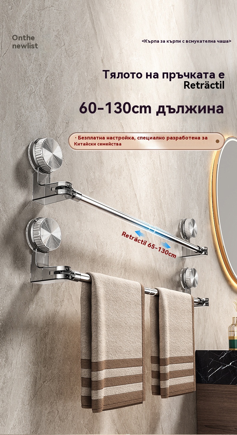 🎁【Купете 1, вземете 1 безплатно】✨🚿Лек дизайн без пробиване — прибираща се поставка за кърпи с вендуза ✅Плащане при доставка