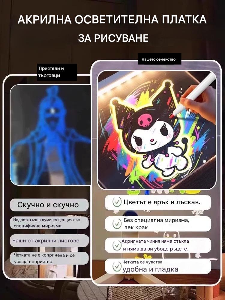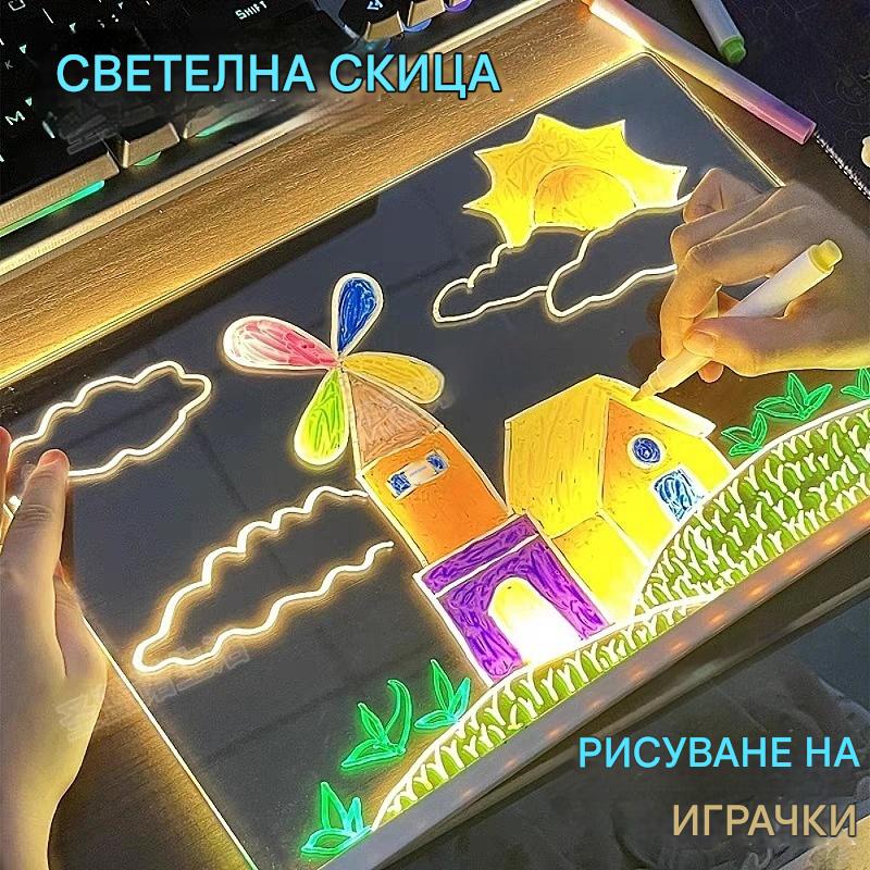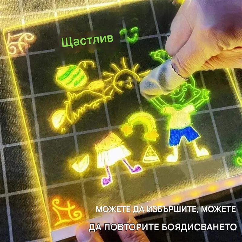 🎨💡✏️ Светеща дъска за рисуване за деца - ръчно изработена, „Направи си сам“ графити, изтриваема, образователна флуоресцентна дъска за рисуване.