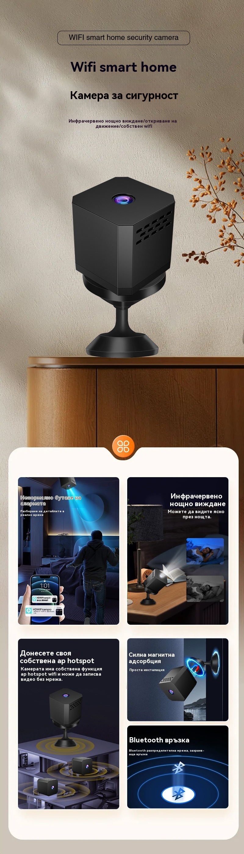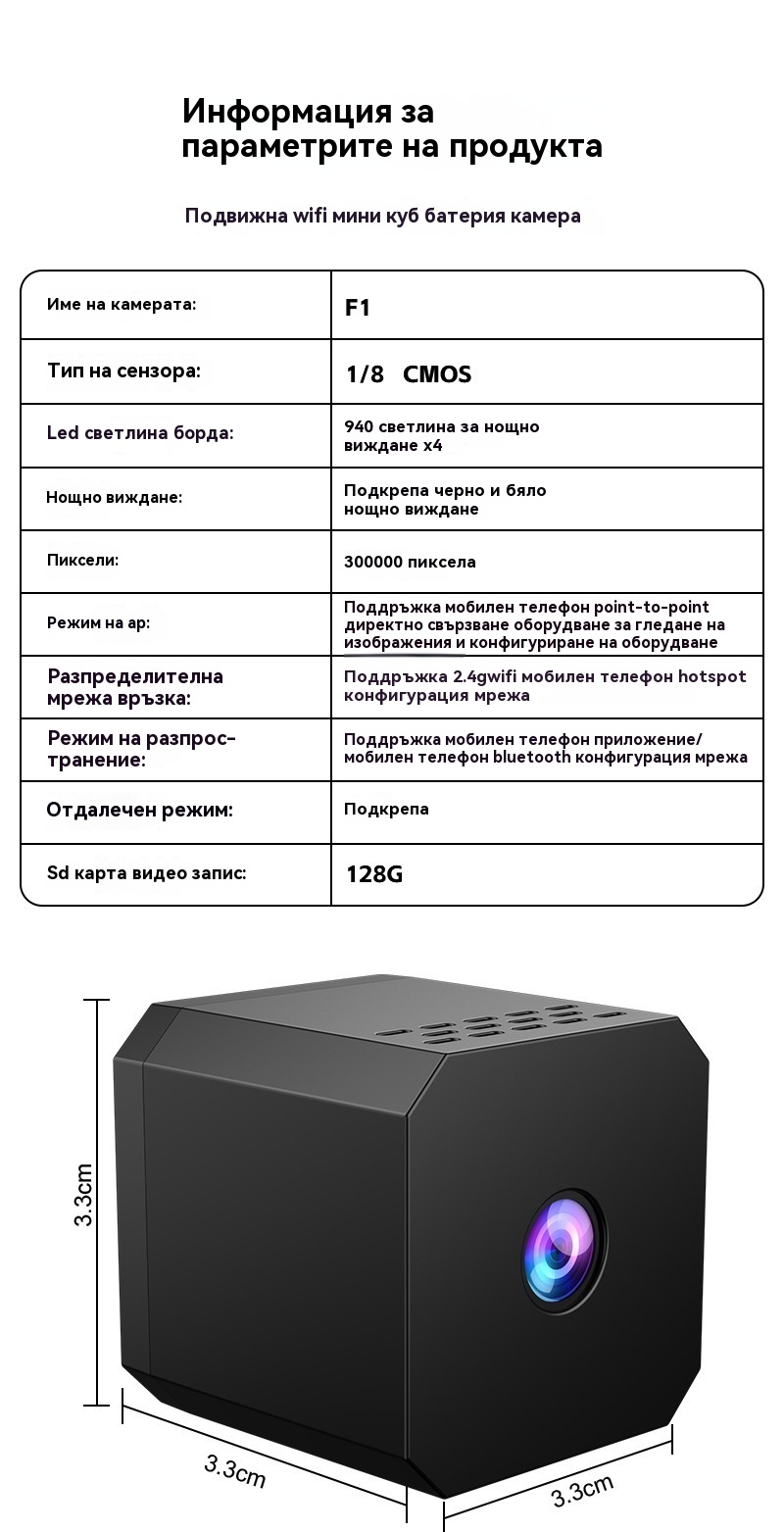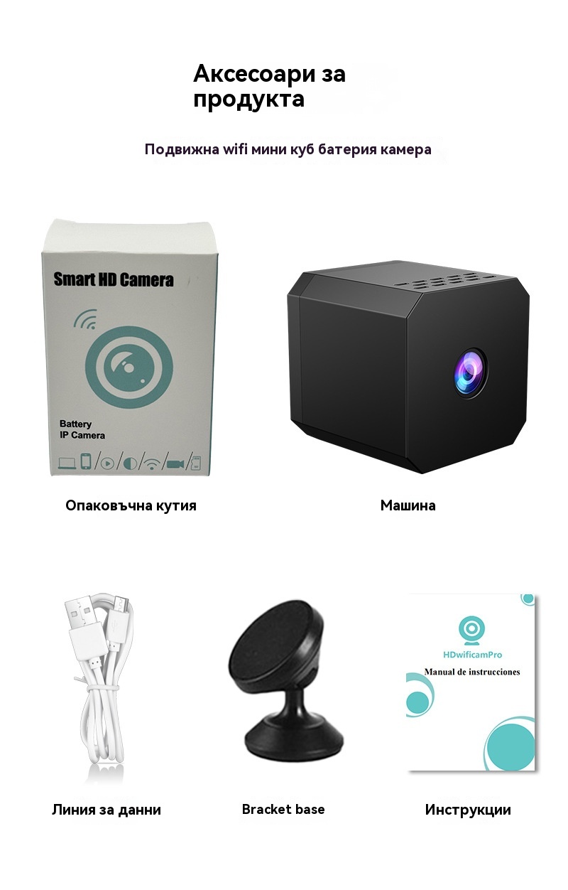 🏠📹🔥Малка квадратна камера, интелигентна камера с висока разделителна способност, безжично дистанционно наблюдение на дома (WiFi)