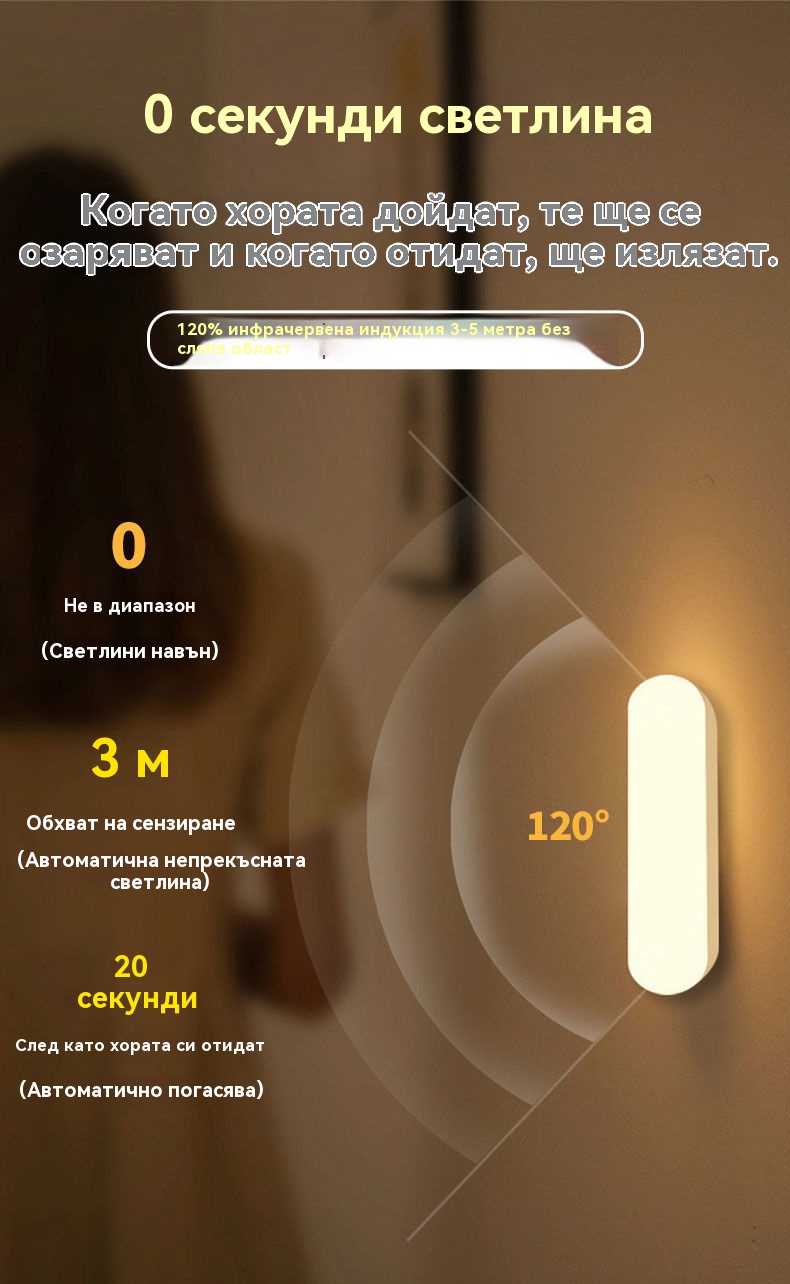 🏡💡Умна LED лампа със сензор за присъствие, лесна за зареждане и практична.