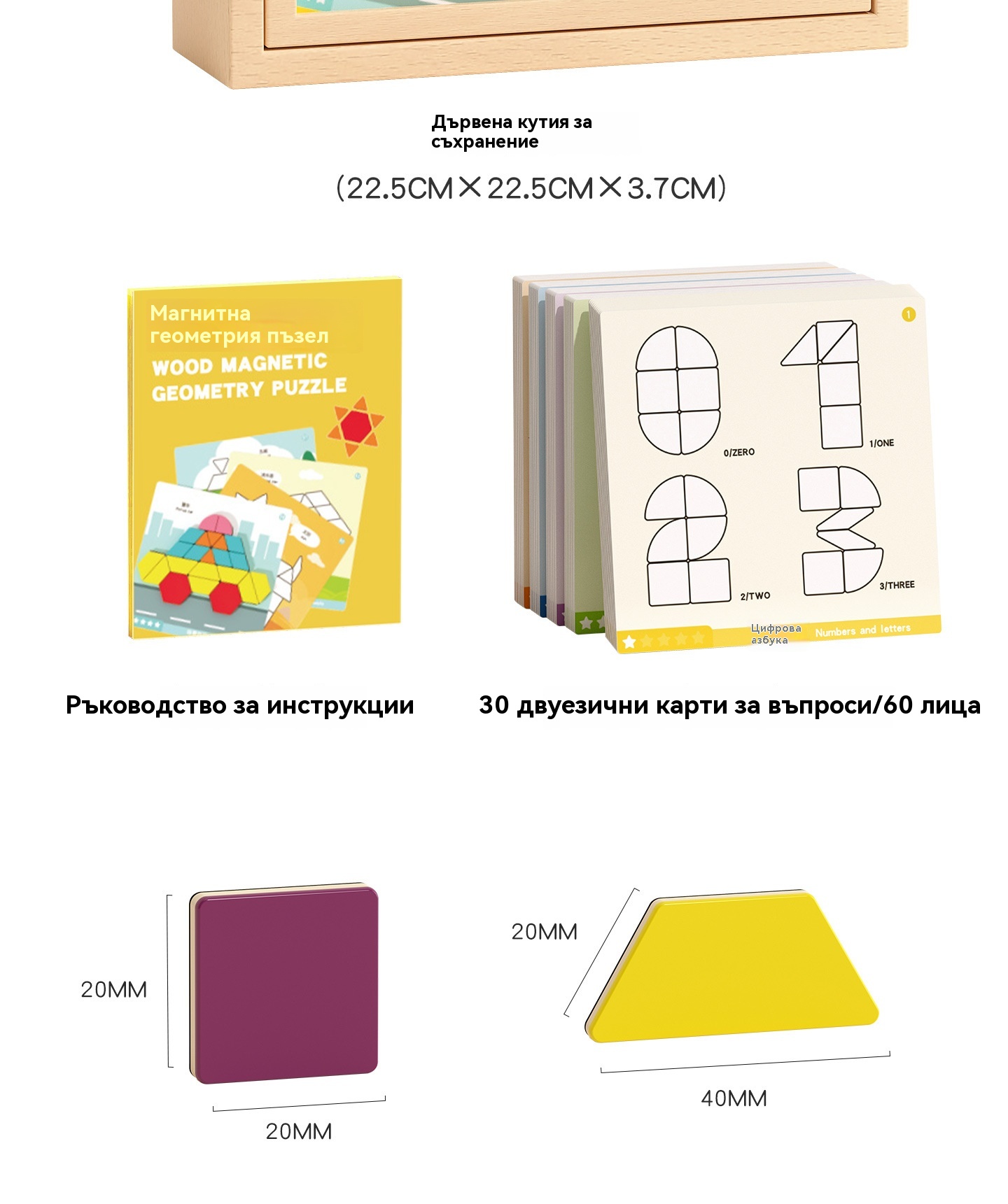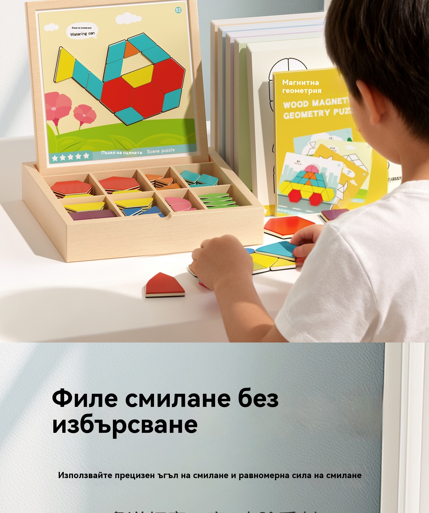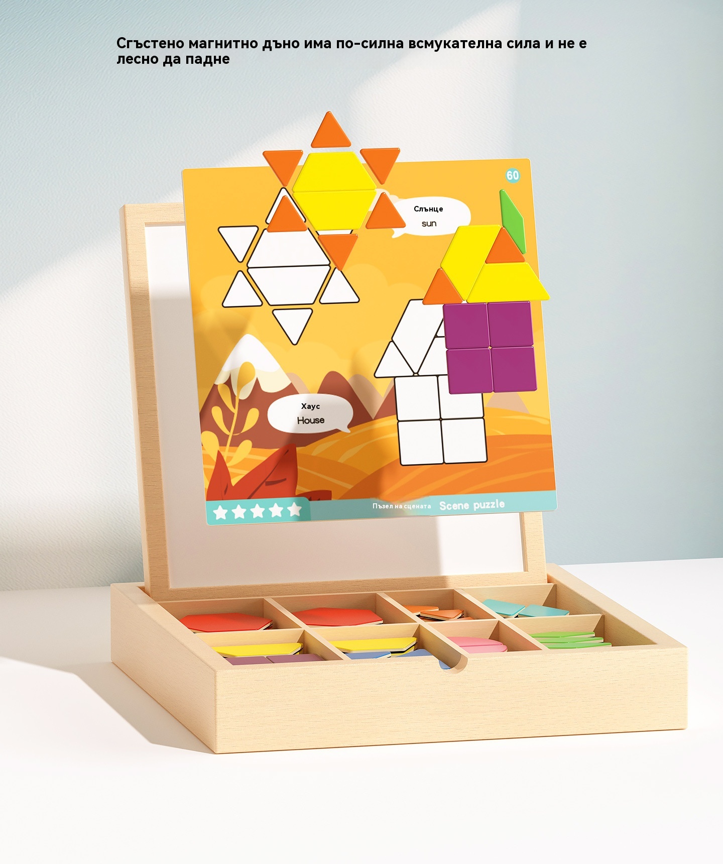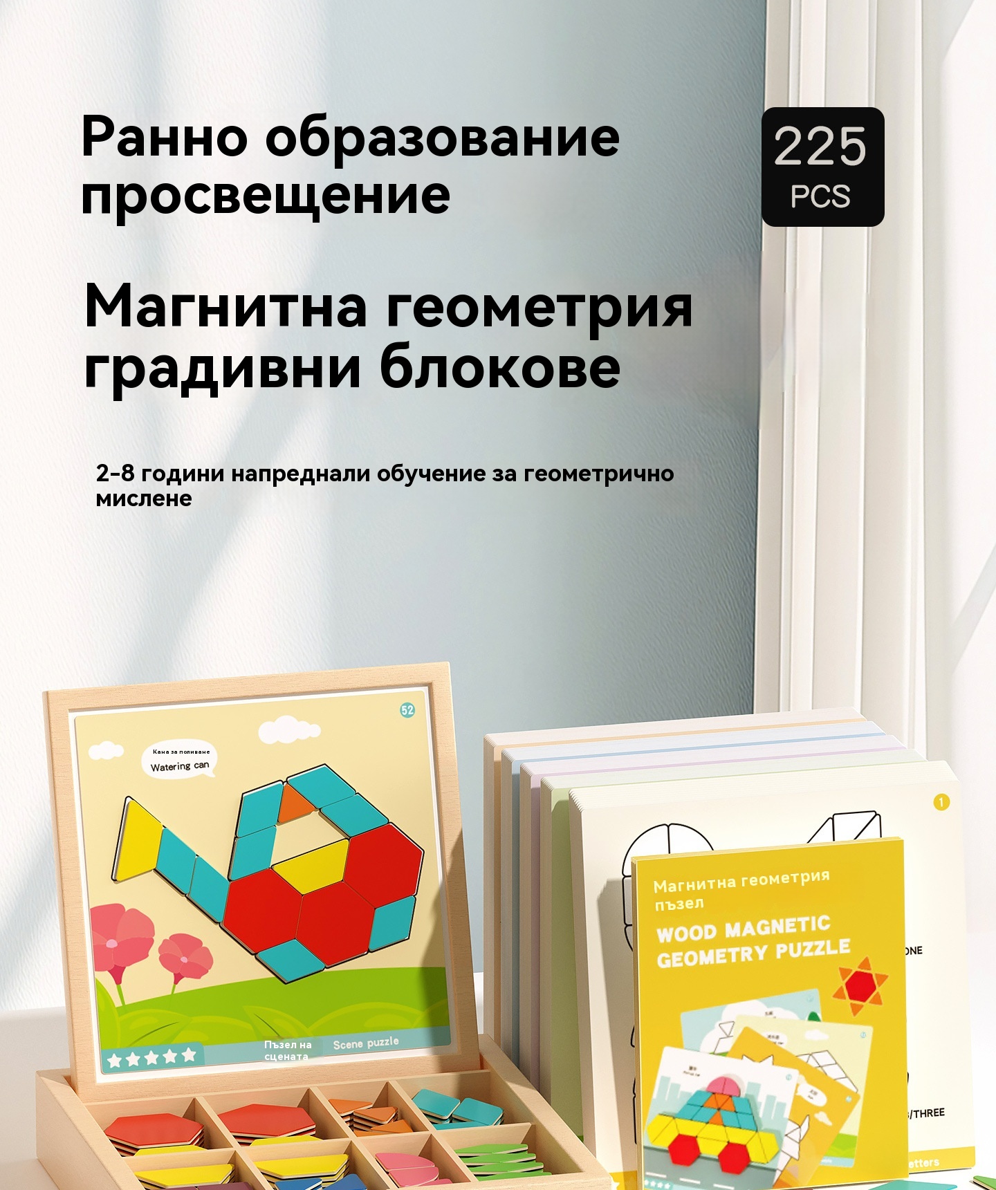 👶🌈🧩【225 части】🔥Магнитен дървен пъзел танграм, трениращ мозъка и образователна играчка за деца, стимулира мисленето.