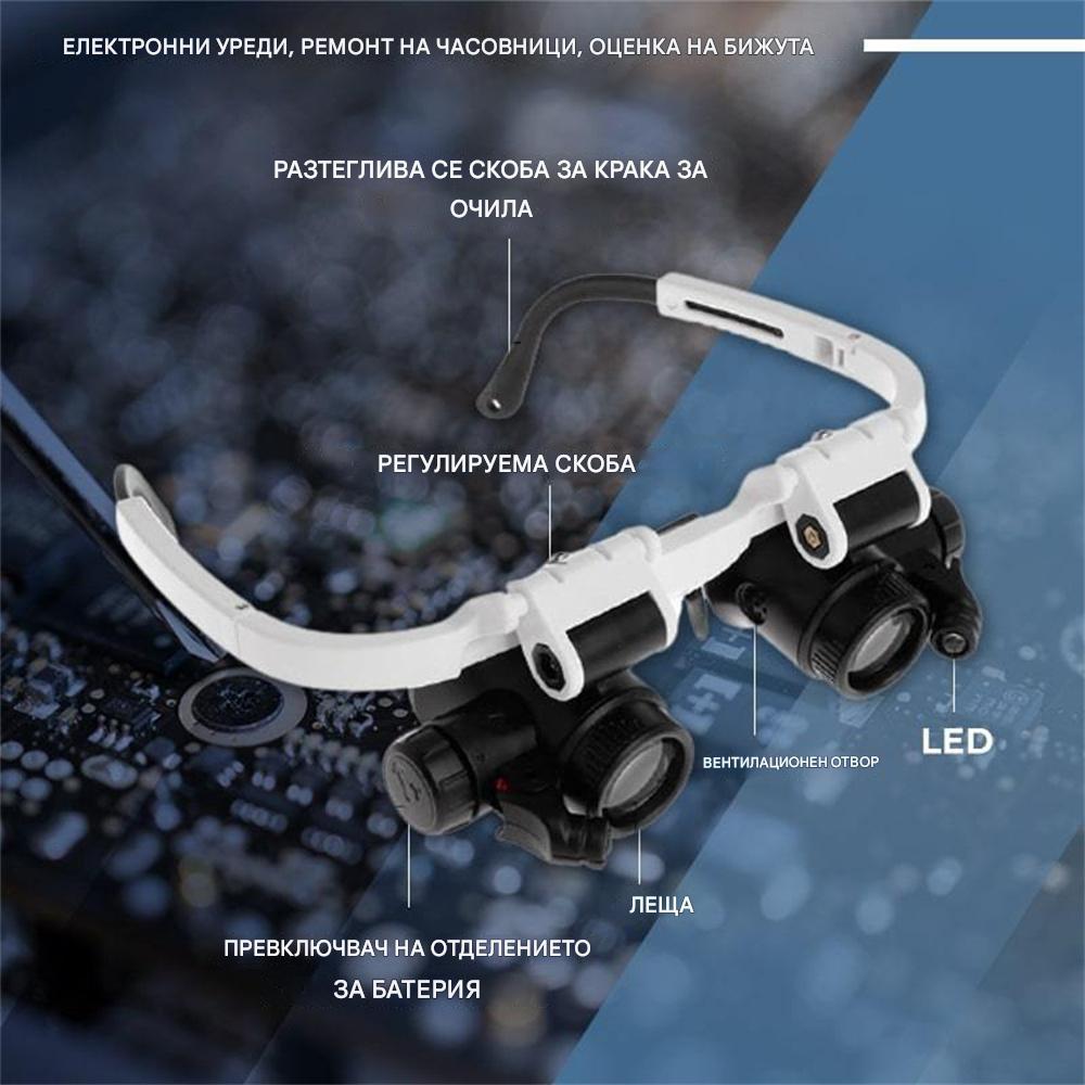 😎🔍Лупа с голямо увеличение за монтиране на главата и LED осветление