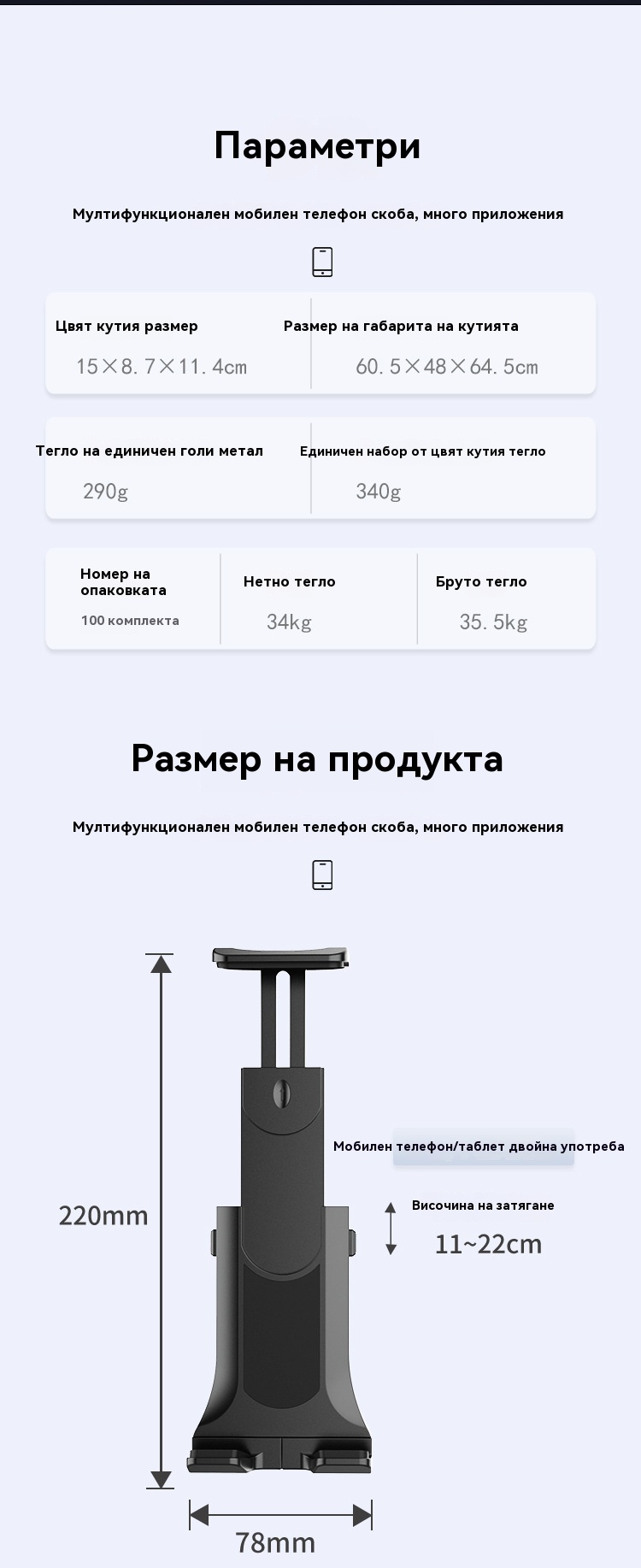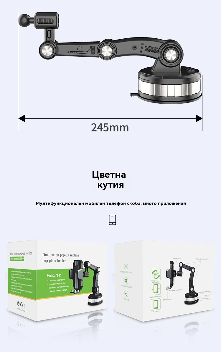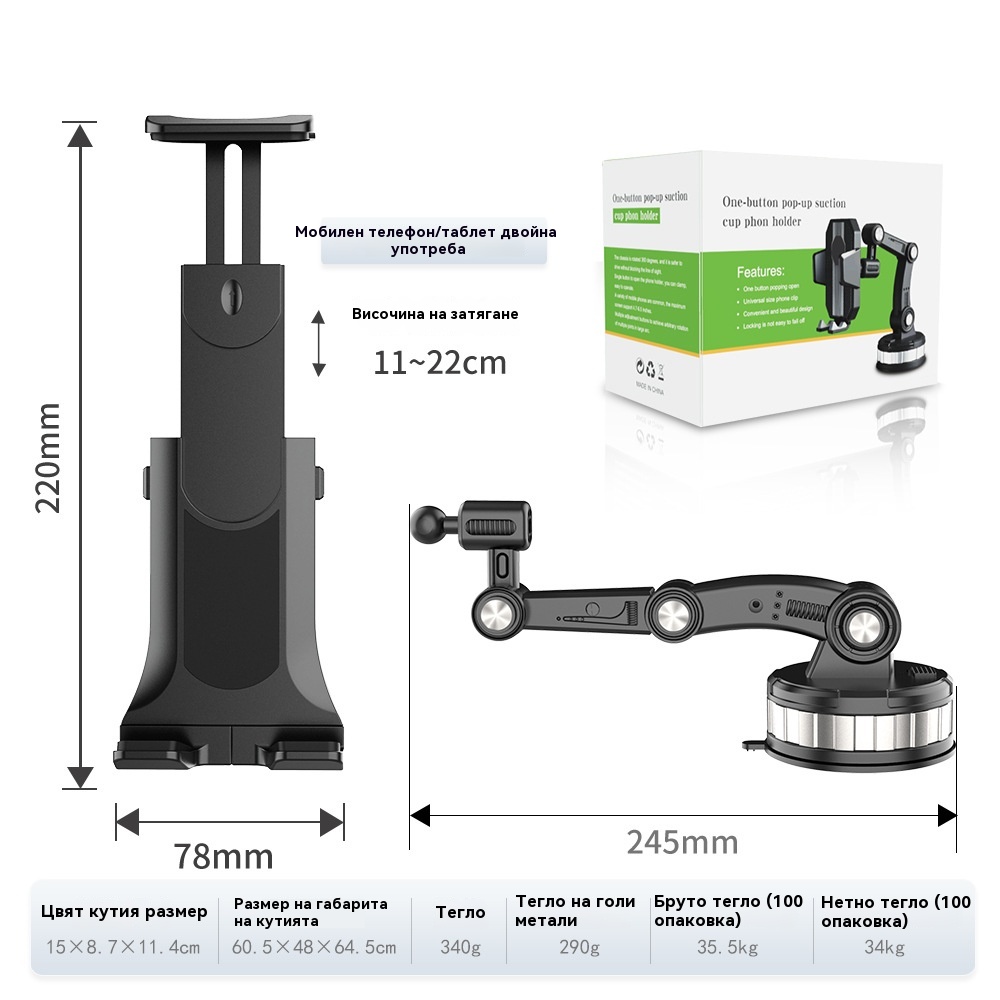 🚗Многофункционална поставка за телефон за кола, издържа до 5 кг!