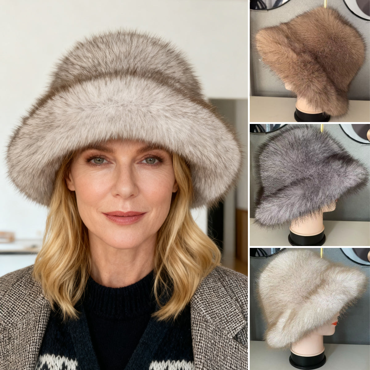 👒Sleva -47%🔥 Dámská teplá podzimní a zimní čepice s velkou krempou a kopulí z lišky