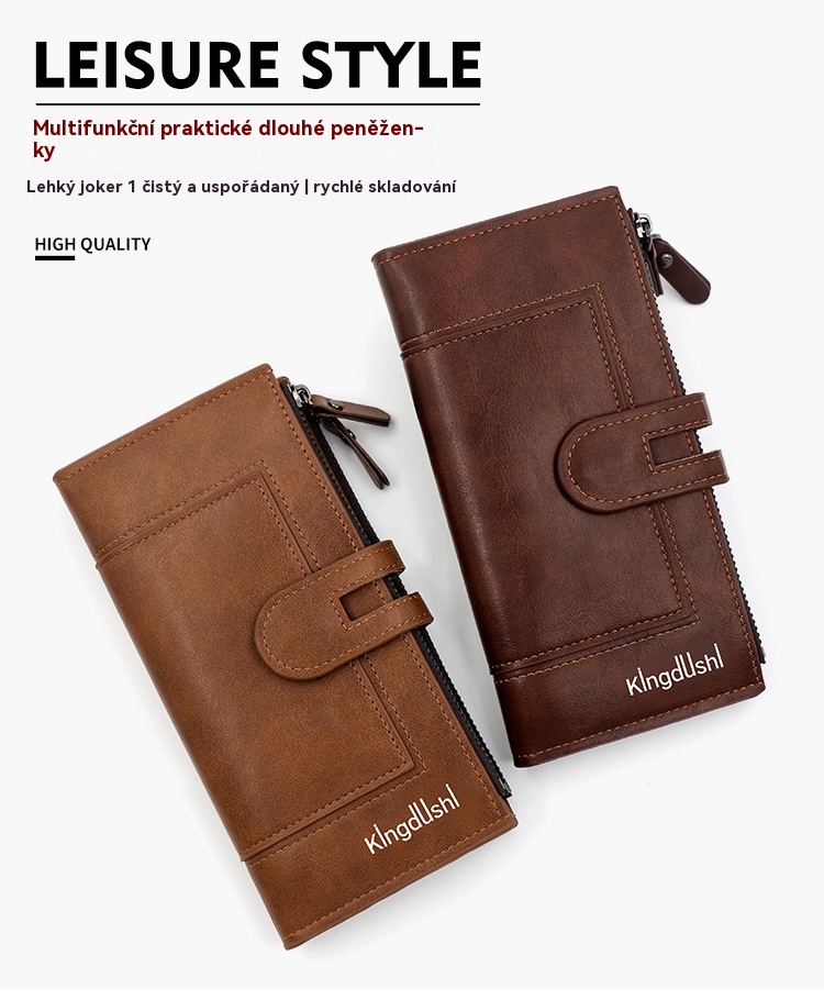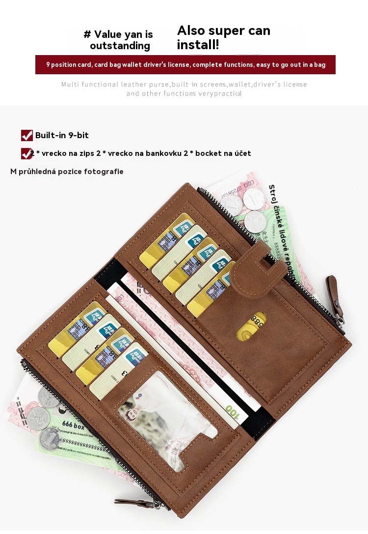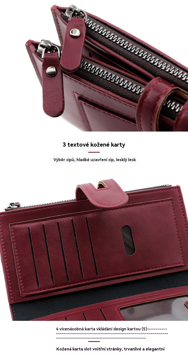 💖【Speciální nabídka】💰Dámská vintage peněženka z pravé kůže, dvojitý zip, více přihrádek na karty