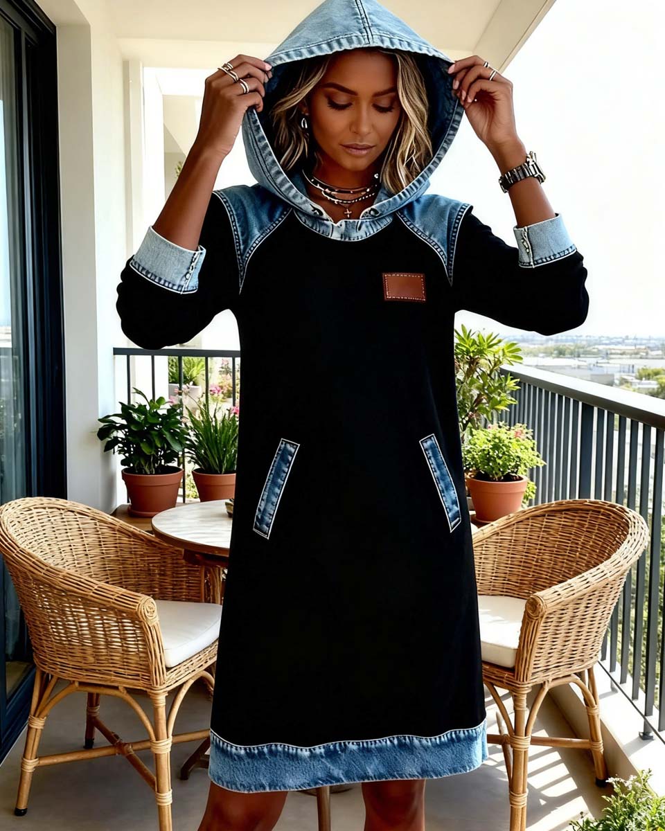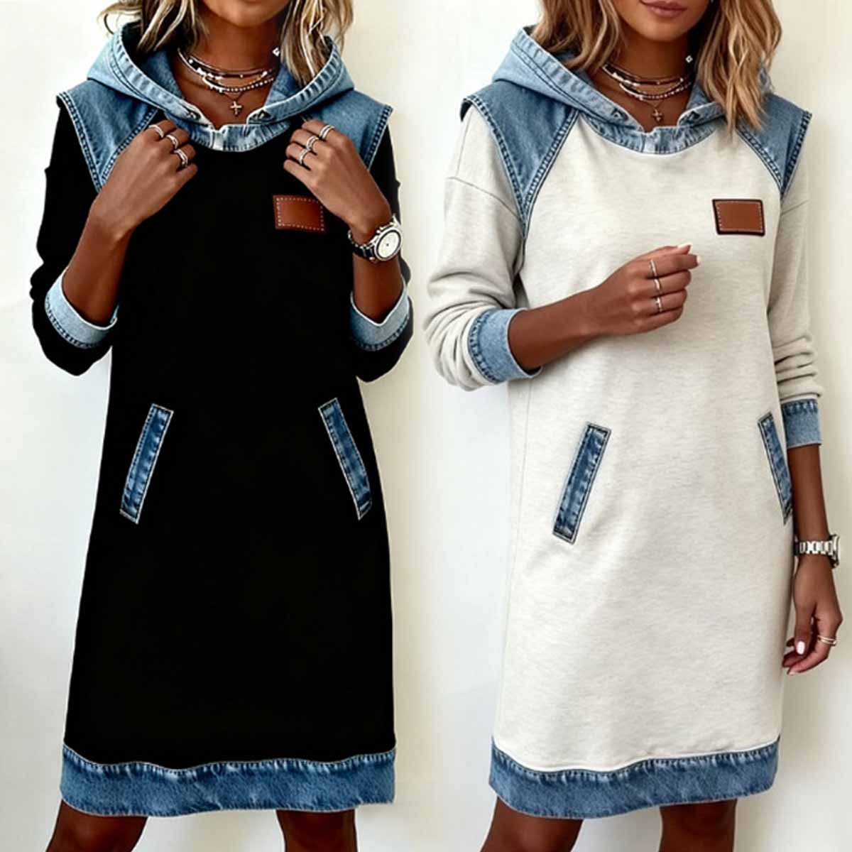 🔥【Sleva 50 %】🌷🌞 Nové džínové šaty s kapucí v zimním stylu, ležérní a retro