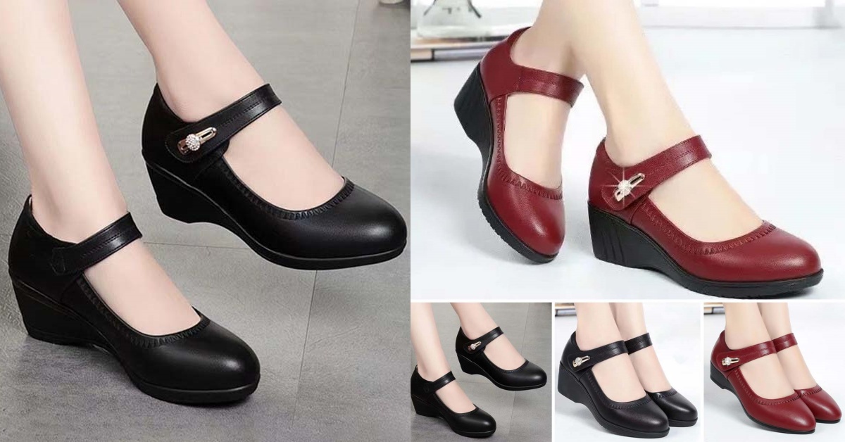 👡【35-41】2025 nuevos zapatos de mujer de piel suave con tacón de cuña antideslizante y suela blanda