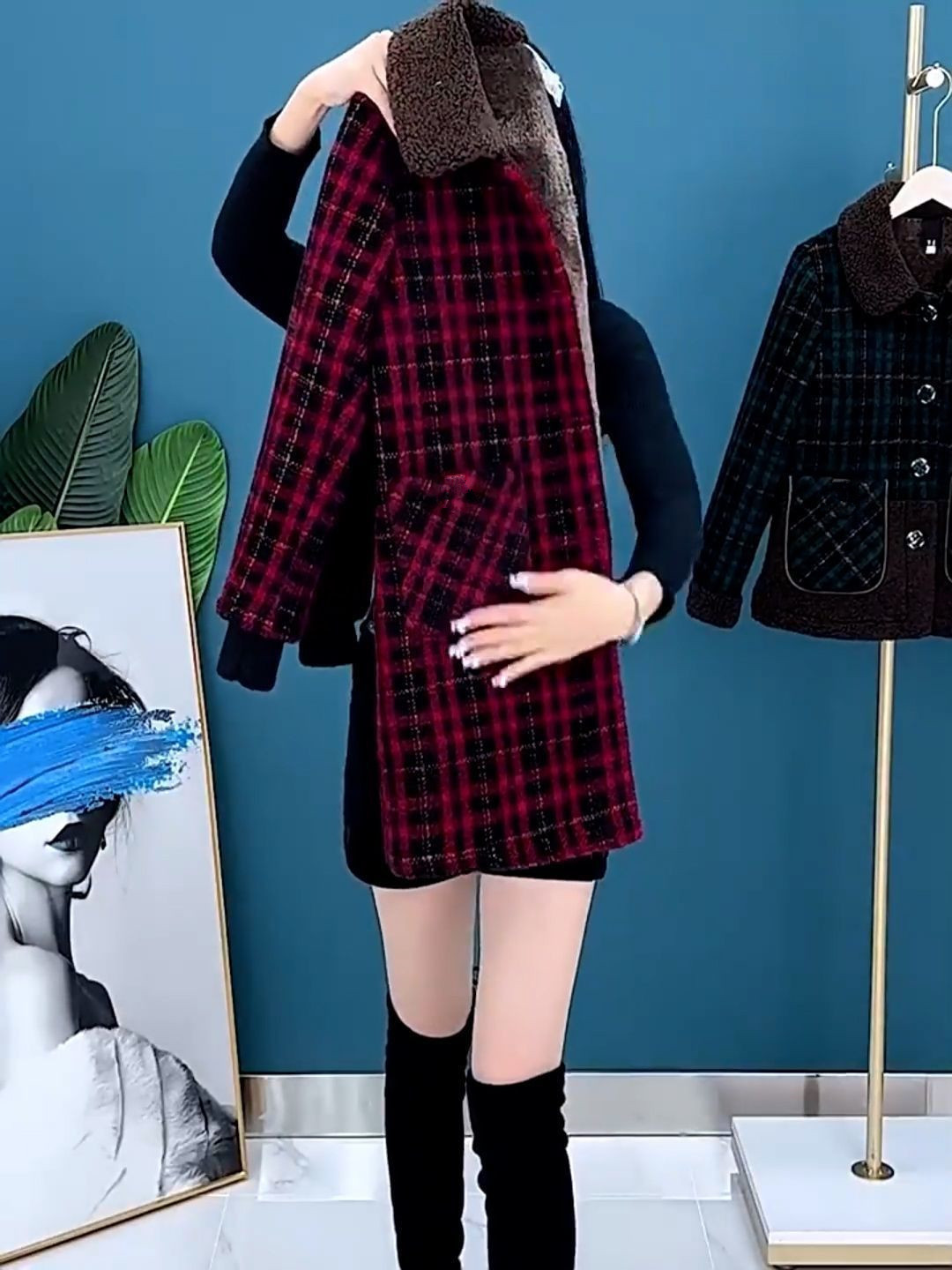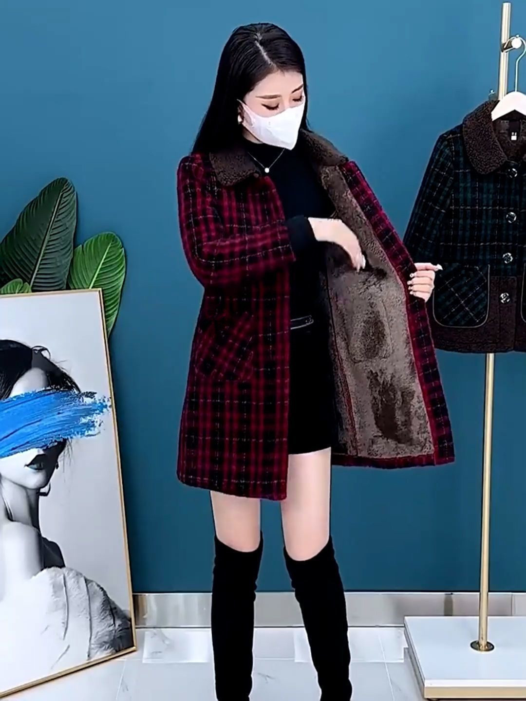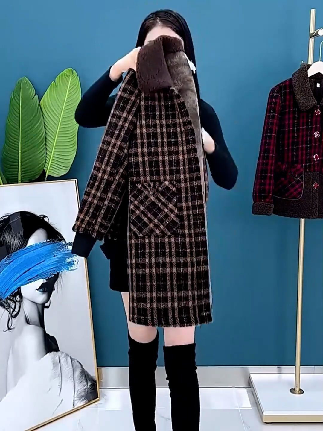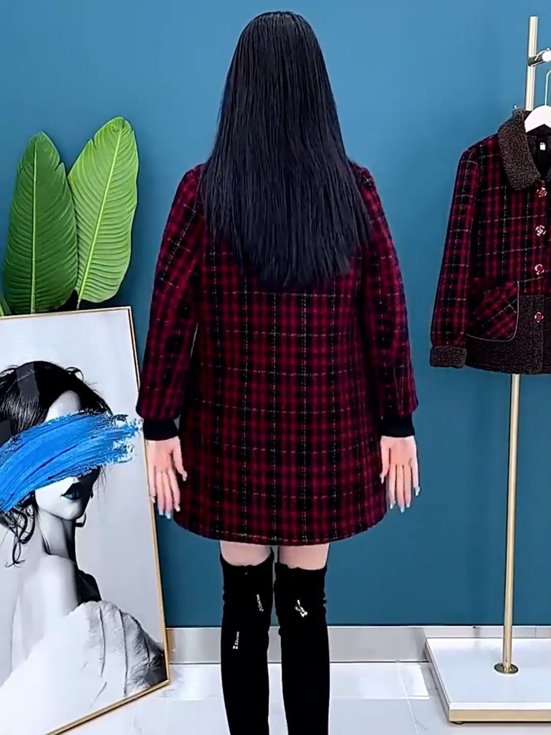 🍁🍂【M-4XL】Nowy płaszcz w kratę z zagęszczonego kaszmiru na jesień i zimę średniej długości