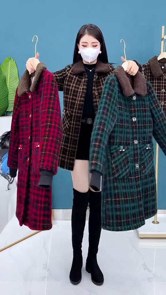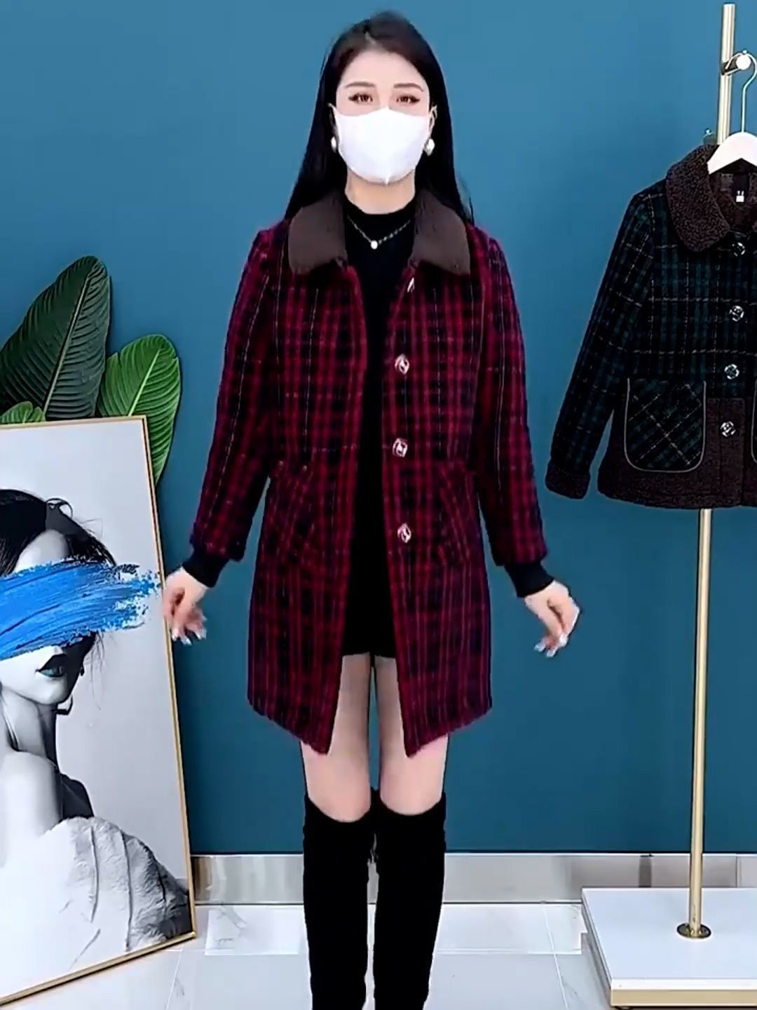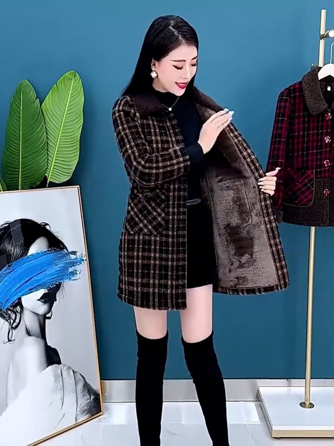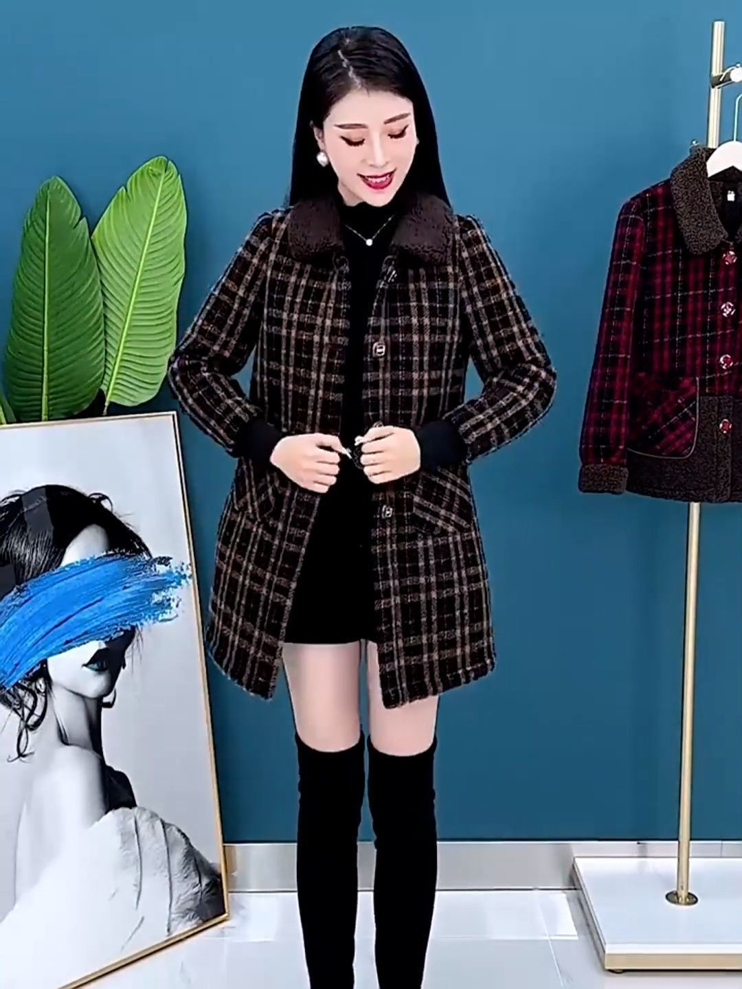 🍁🍂【M-4XL】Nowy płaszcz w kratę z zagęszczonego kaszmiru na jesień i zimę średniej długości