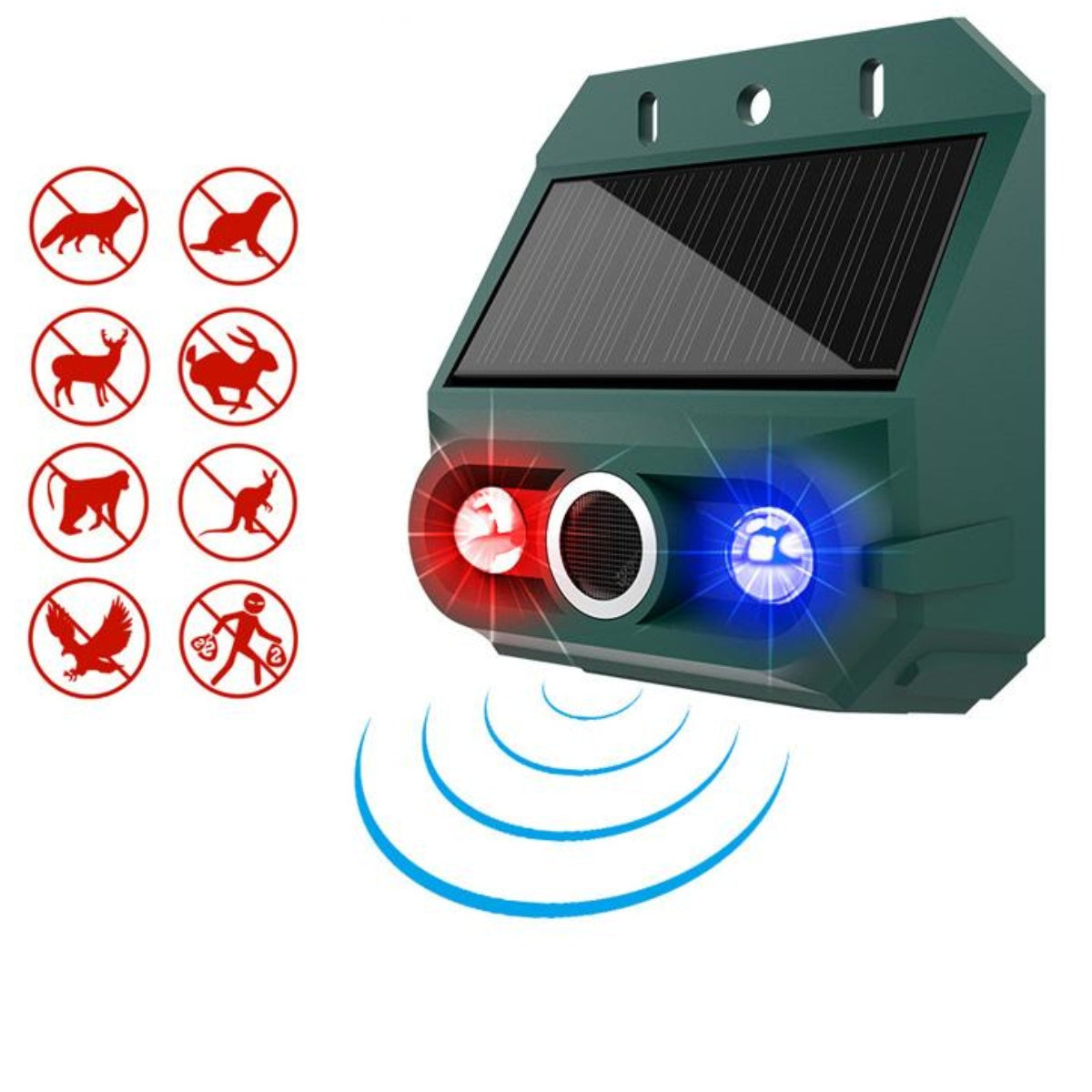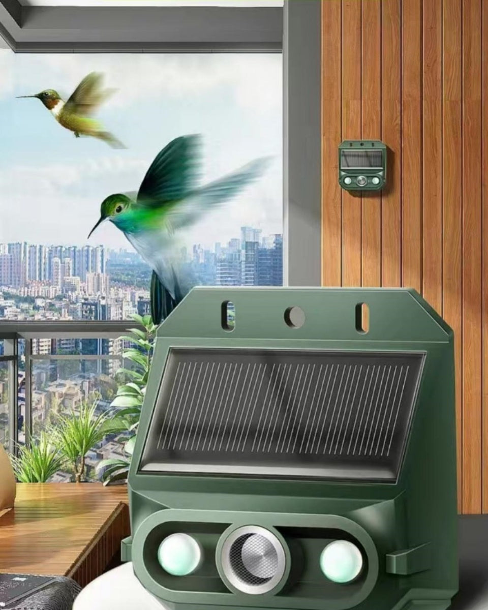 ✨🔥Odstraszacz ptaków ultradźwiękowy zasilany energią słoneczną do użytku na zewnątrz z migającymi diodami LED w podczerwieni, kolorze czerwonym i niebieskim