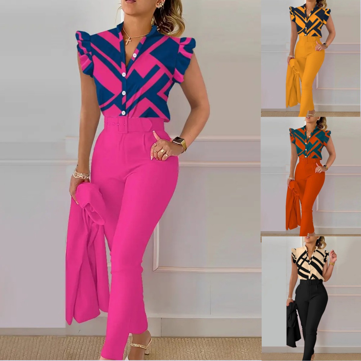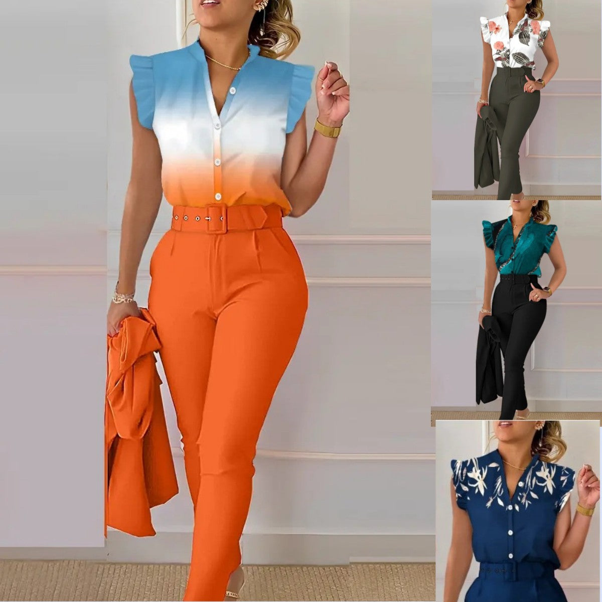 ✨😍👍Koszula bez rękawów z dekoltem w serek + spodnie obcisłe