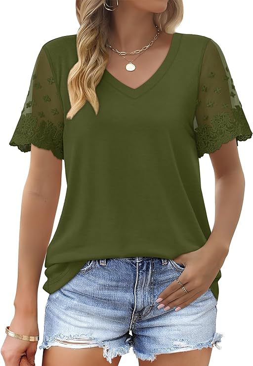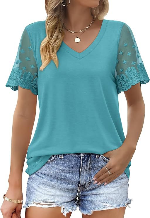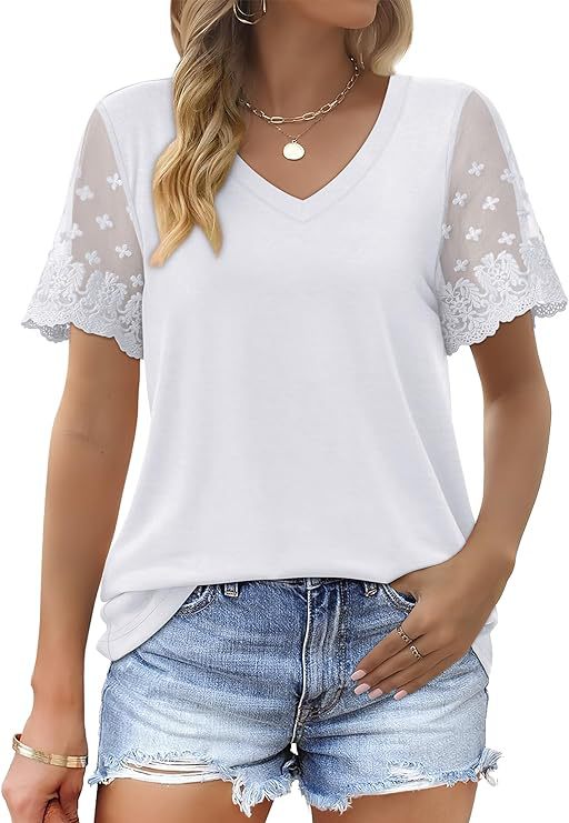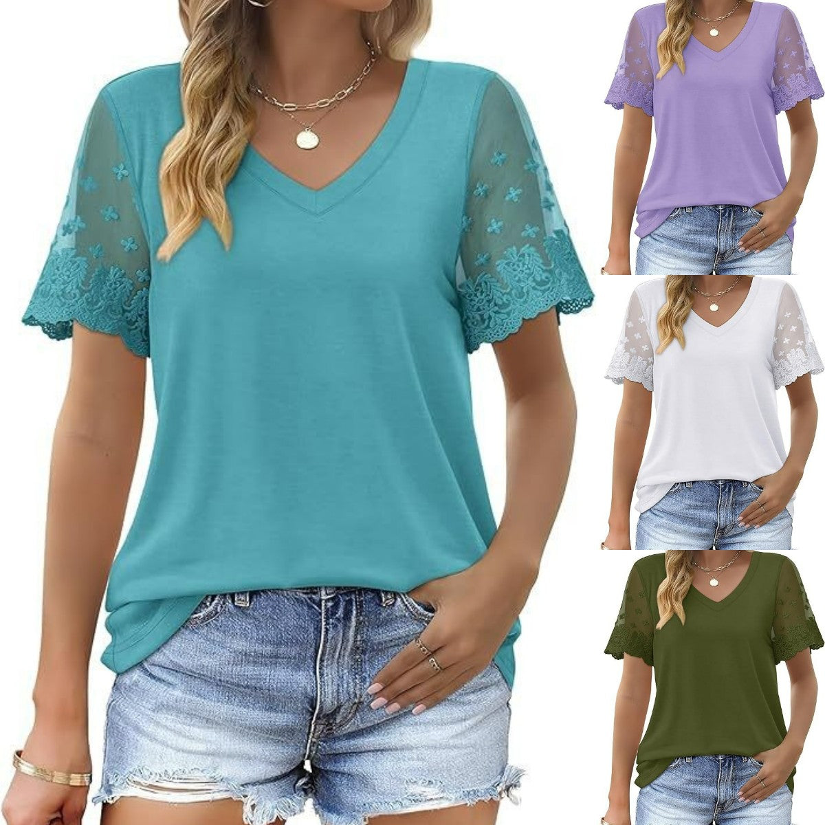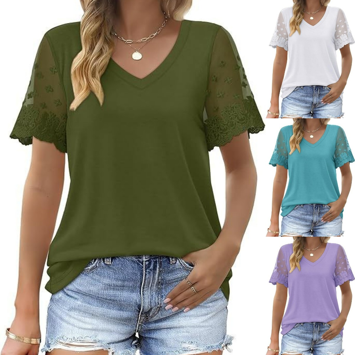 🌼Modny koronkowy top z krótkim rękawkiem-3707076