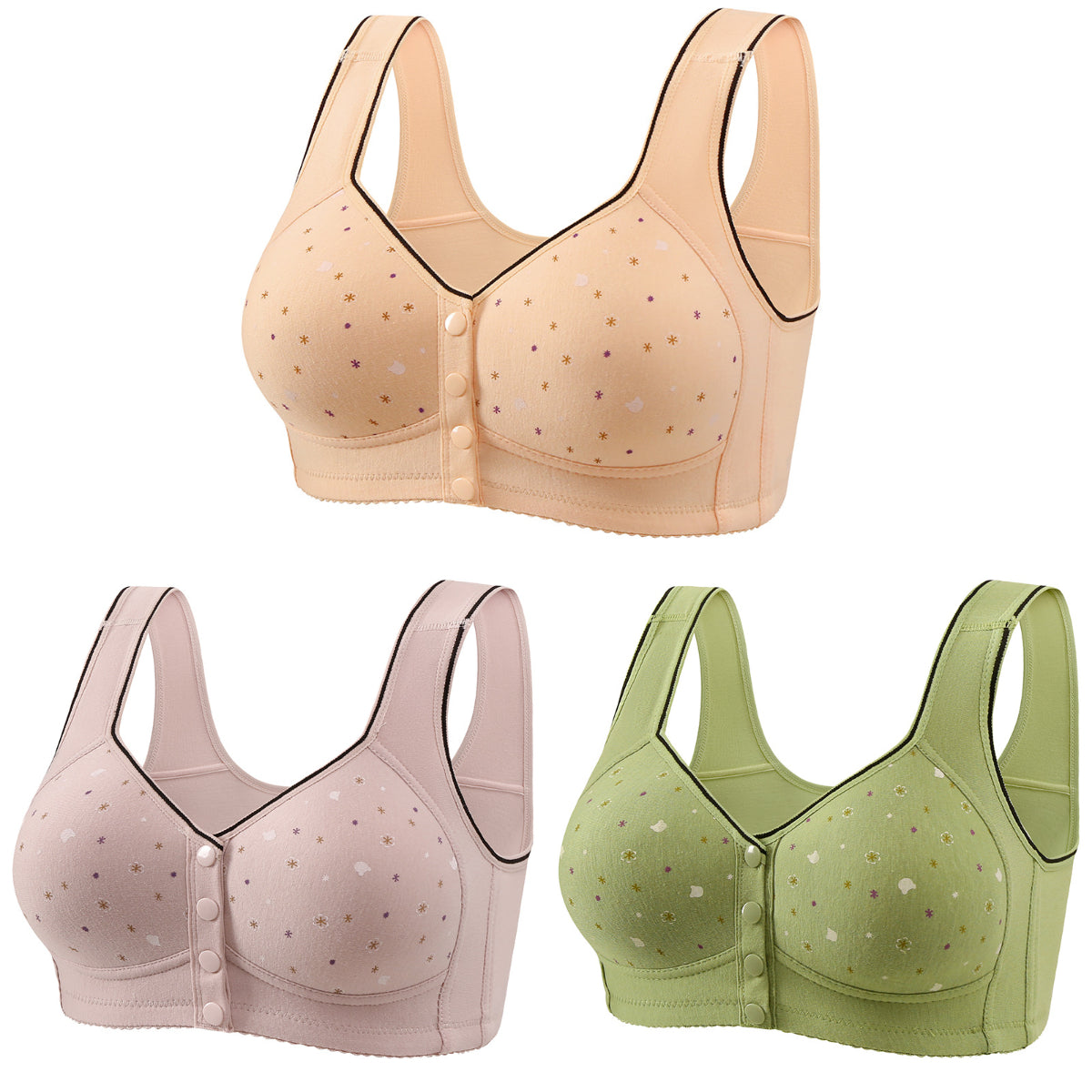 🏆[3 opakowania] [40-120 kg] Biustonosz damski bez fiszbin, zapięcie z przodu ❤️Bawełna Tencel, naturalnie antybakteryjna i wygodna