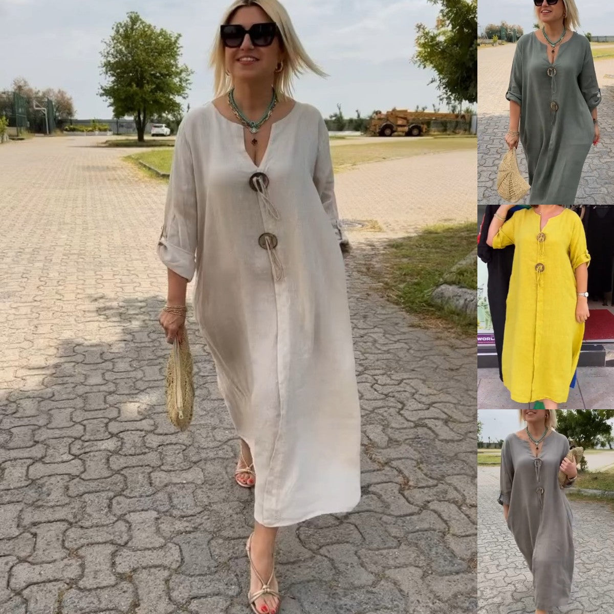đđăS-5XLăCodzienna sukienka z baweĆny i lnu, z dekoltem w ksztaĆcie litery V3688194