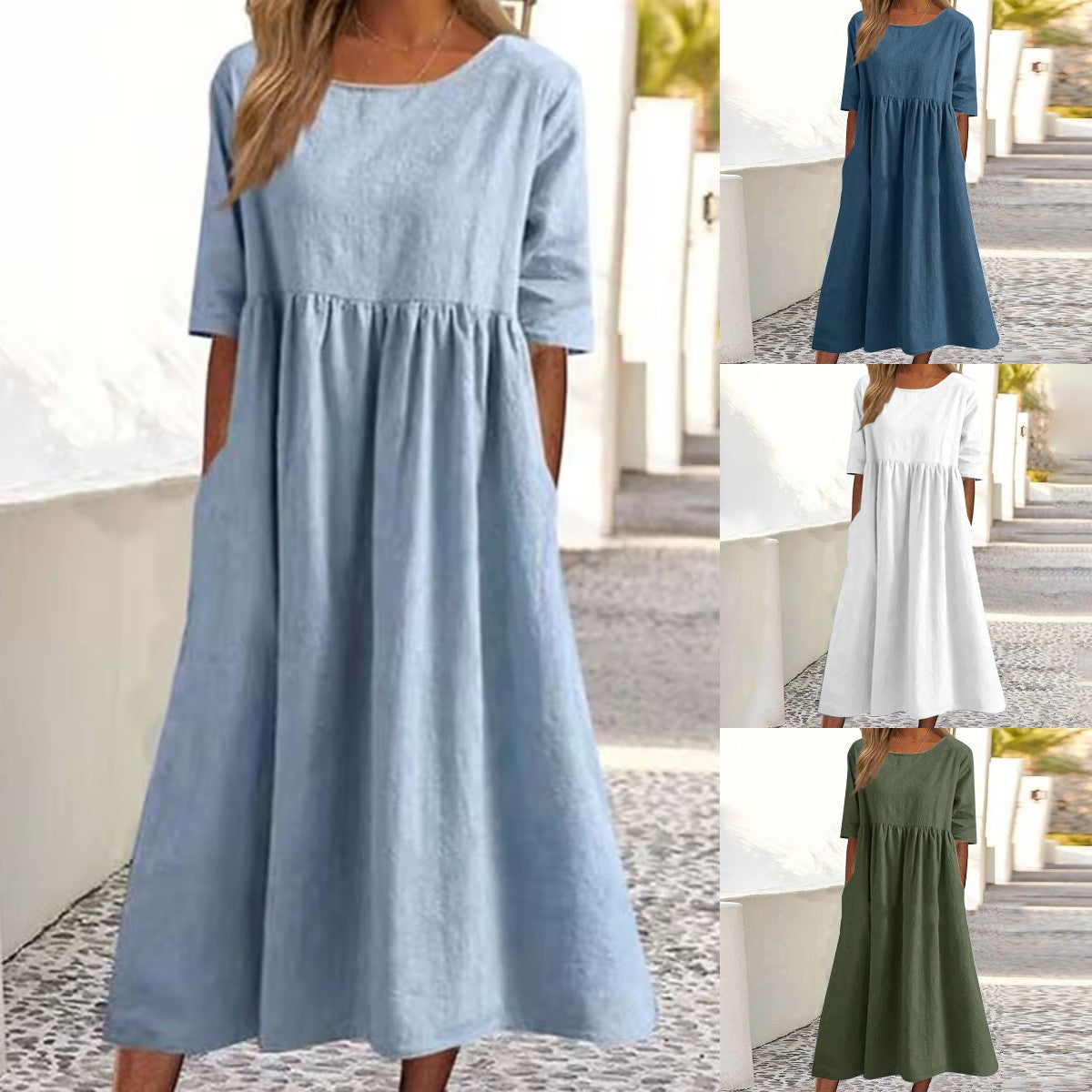 💥👗【S-5XL】2025 Bawełniana Casualowa Sukienka Z Kieszeniami