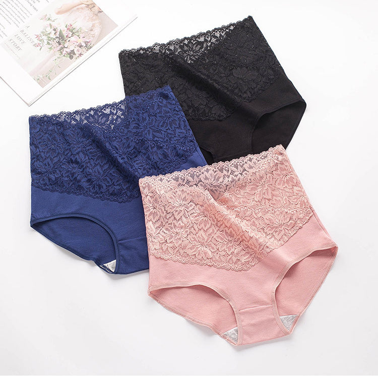 š„ćKup 3, a otrzymasz 3 za darmoćšAntybakteryjne baweÅniane koronkowe majtki z wysokim stanem-