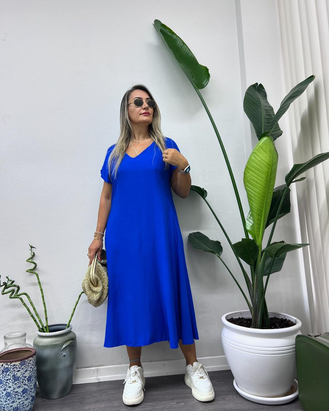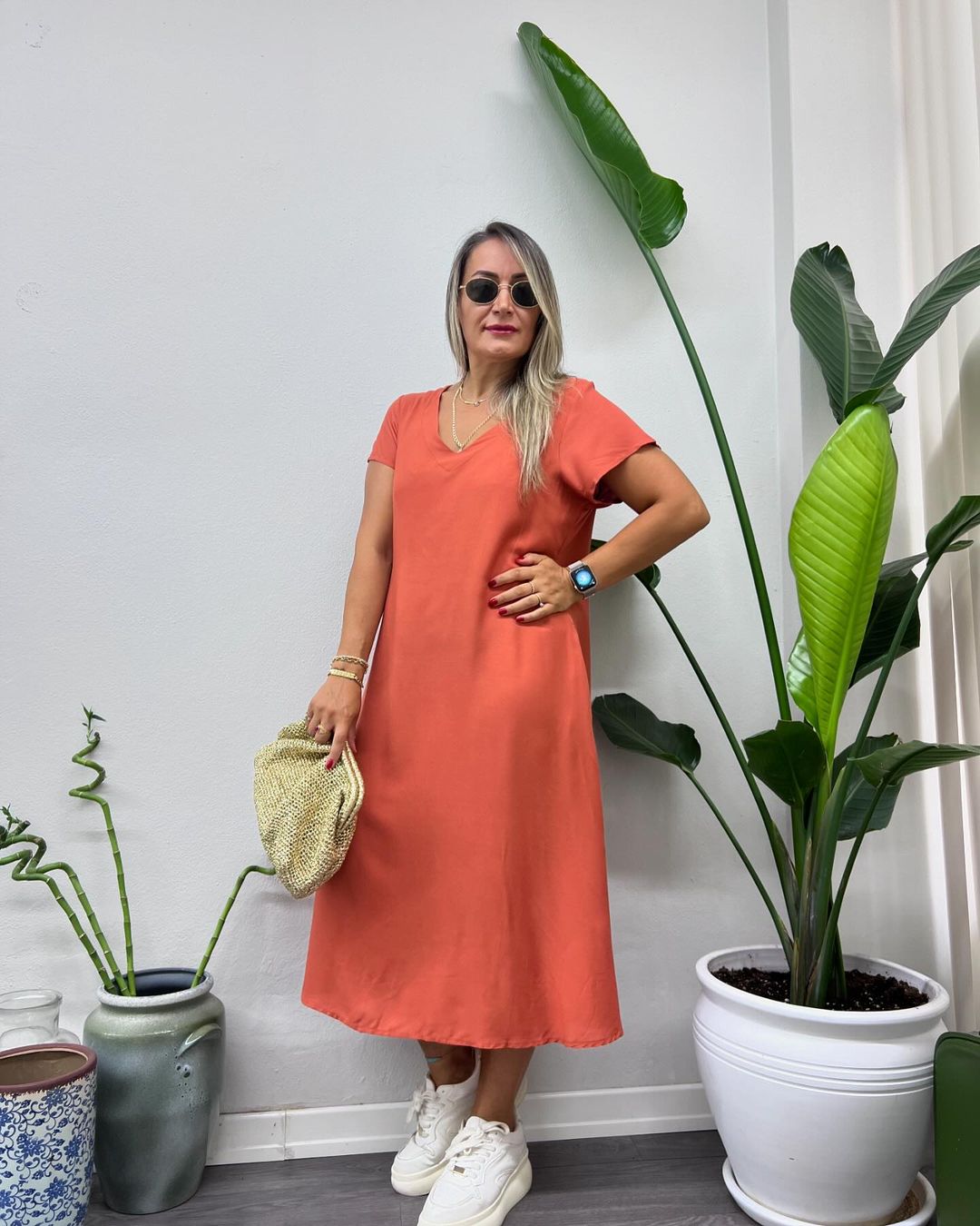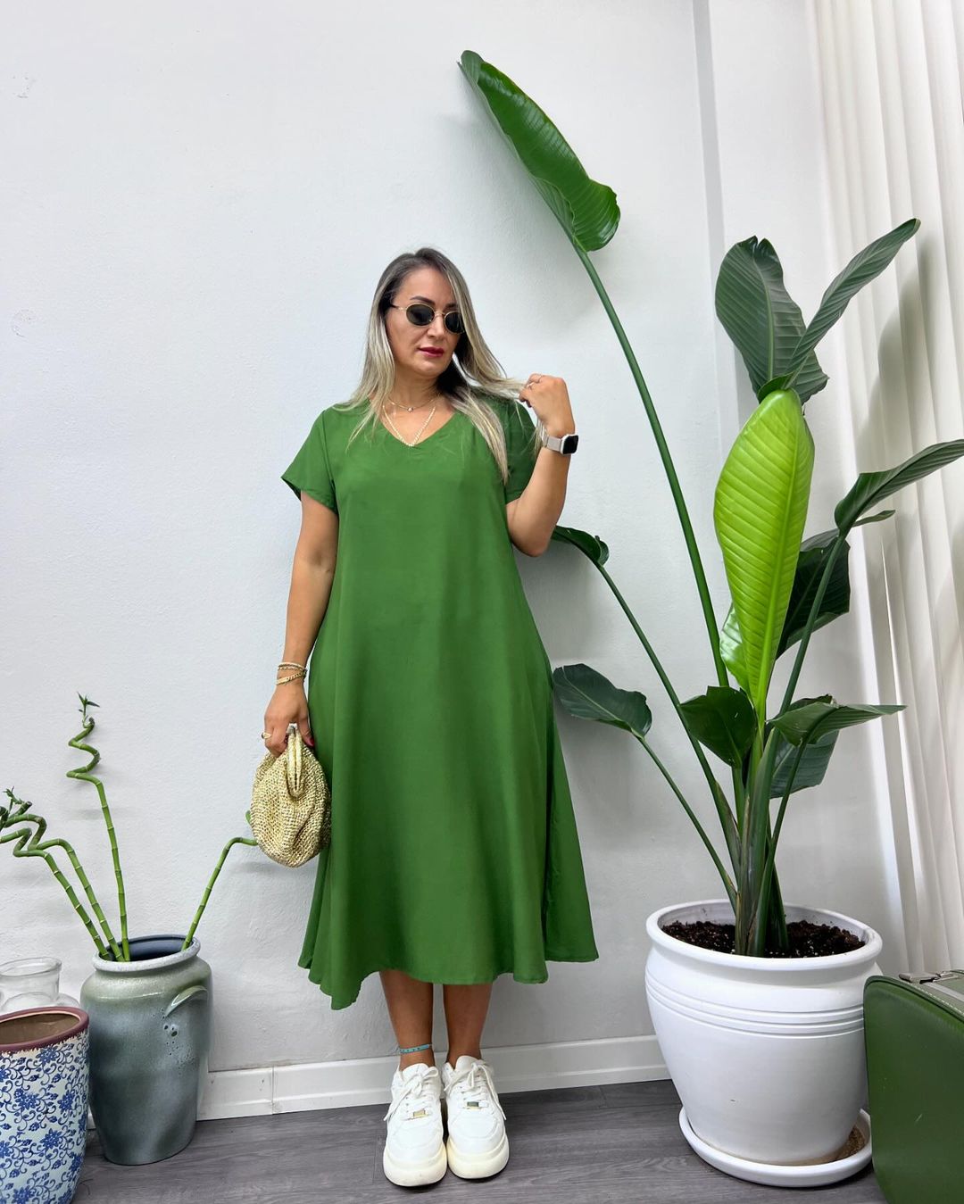 🔥✅Długa jednokolorowa sukienka z dekoltem w kształcie litery V, wykonana z czystej bawełny3731914
