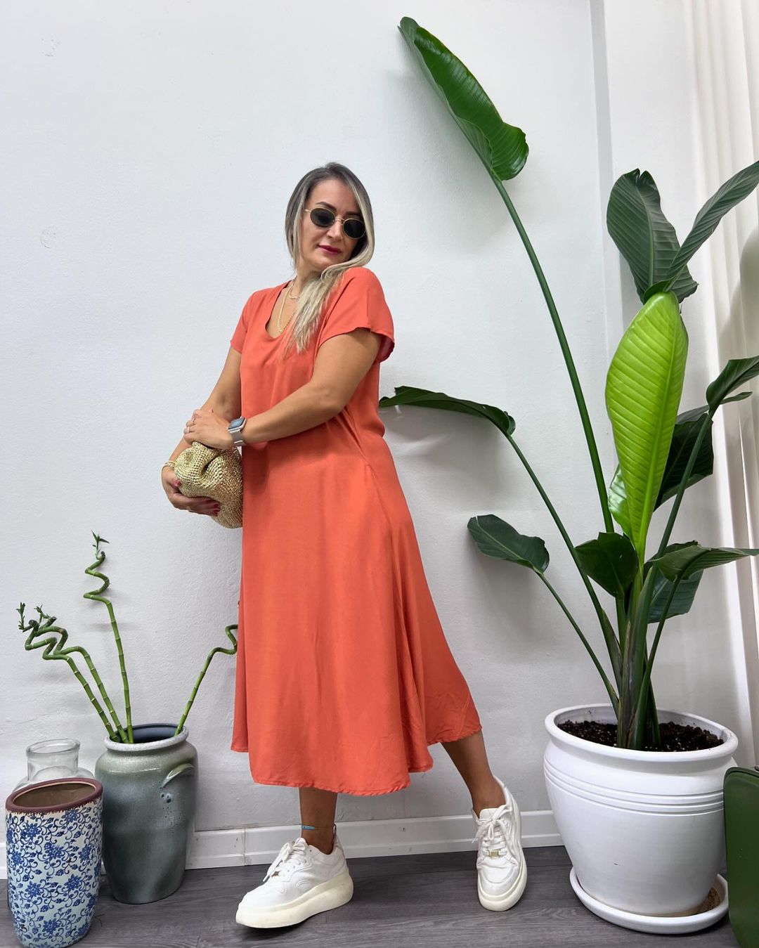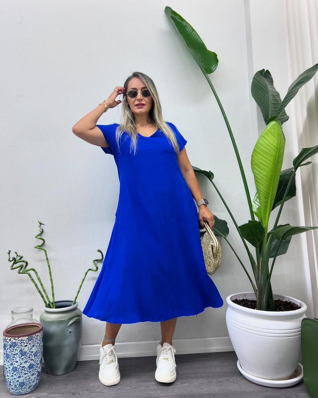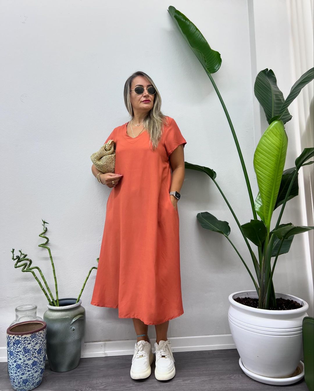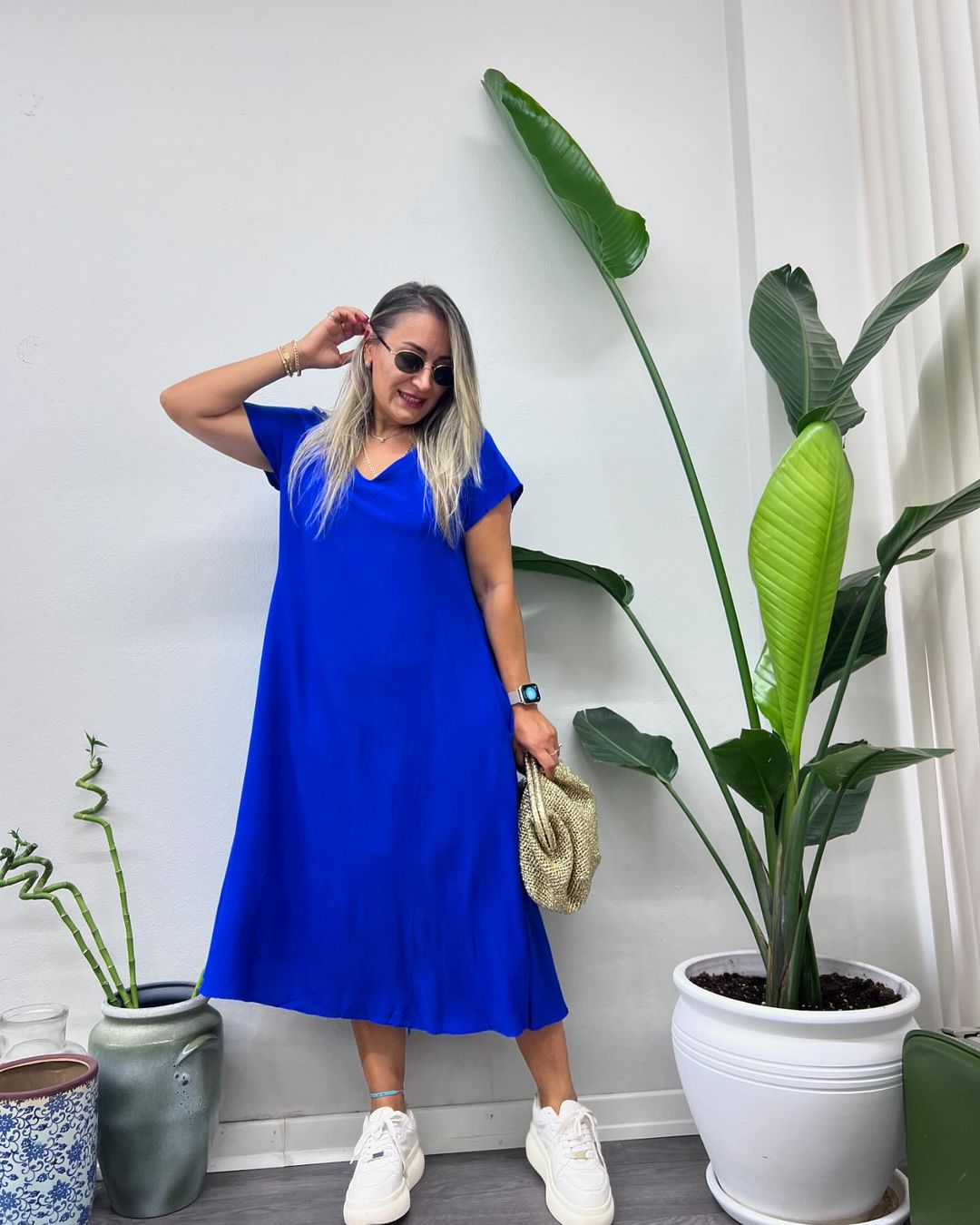 🔥✅Długa jednokolorowa sukienka z dekoltem w kształcie litery V, wykonana z czystej bawełny3731914