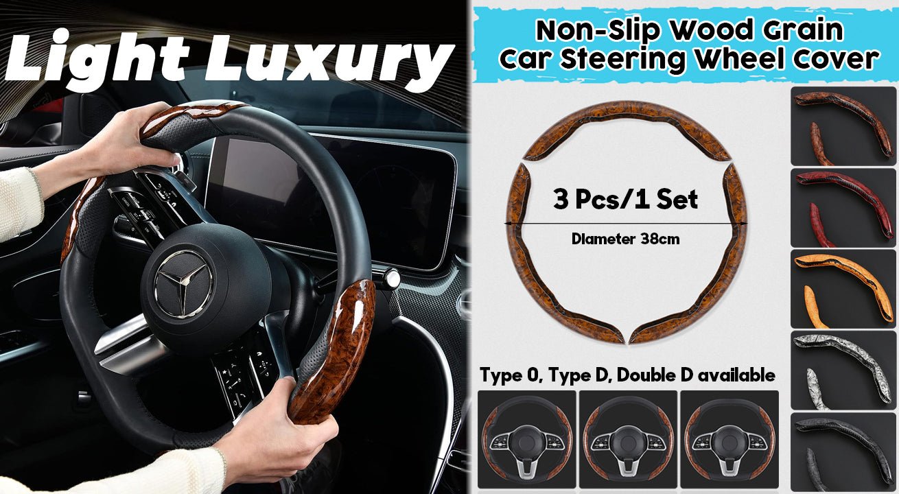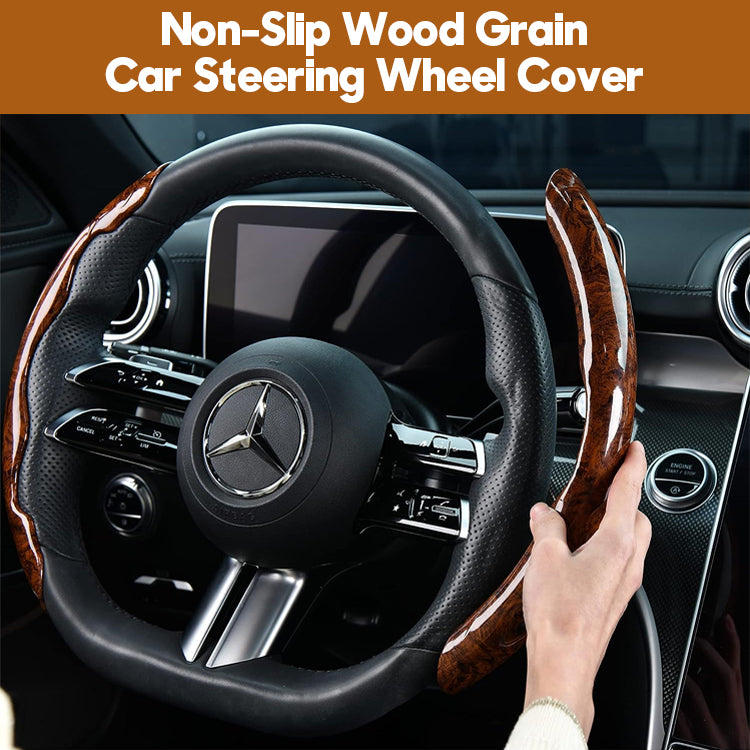 🔥🔥Bestseller w Polsce🔥🔥🚗【1 zestaw 3 sztuk】Drewniana antypoślizgowa osłona kierownicy samochodu