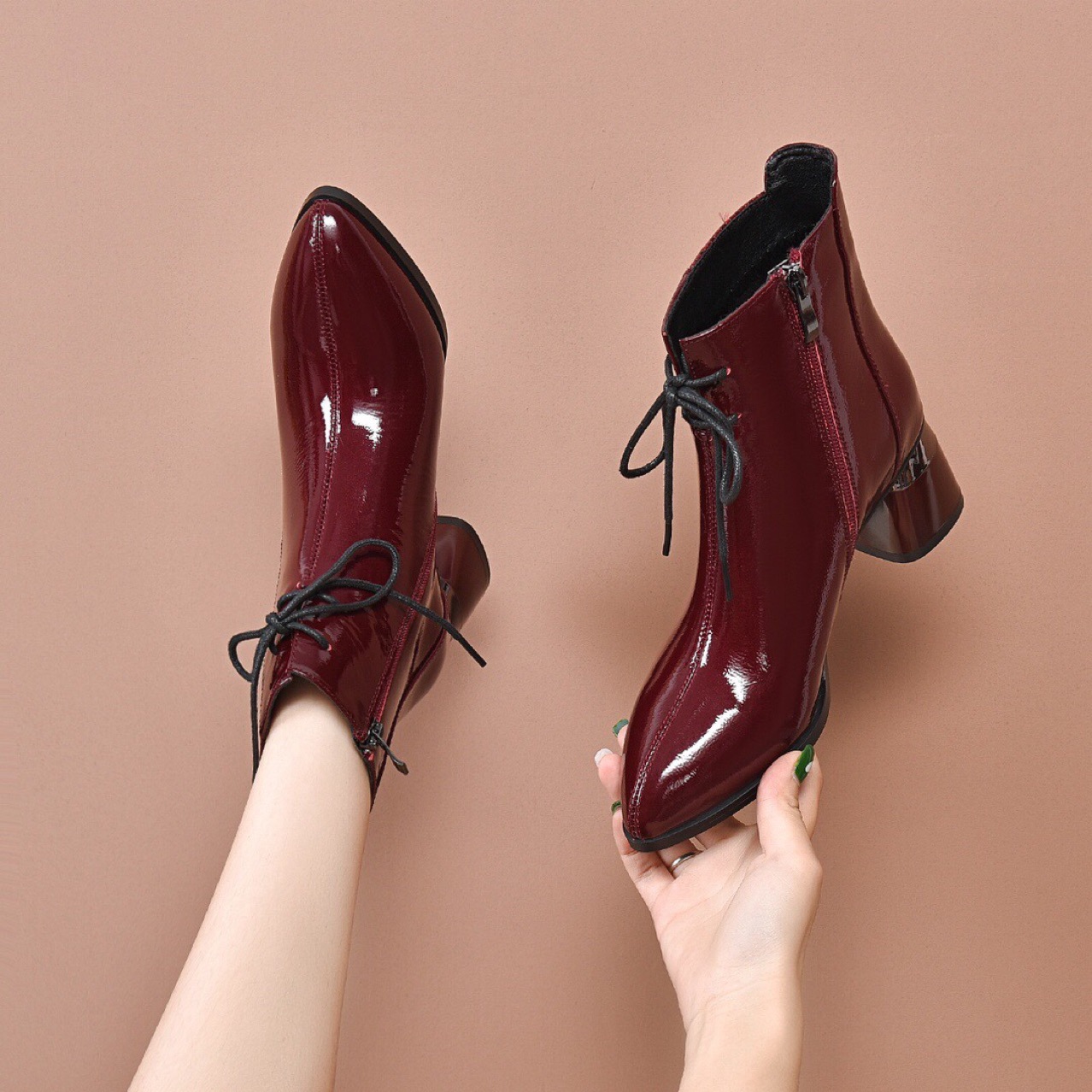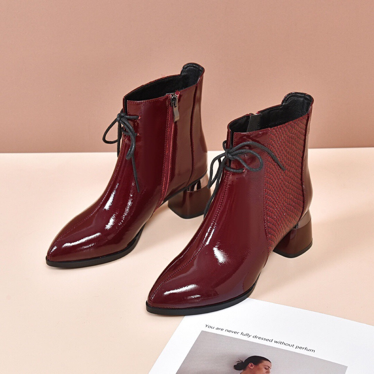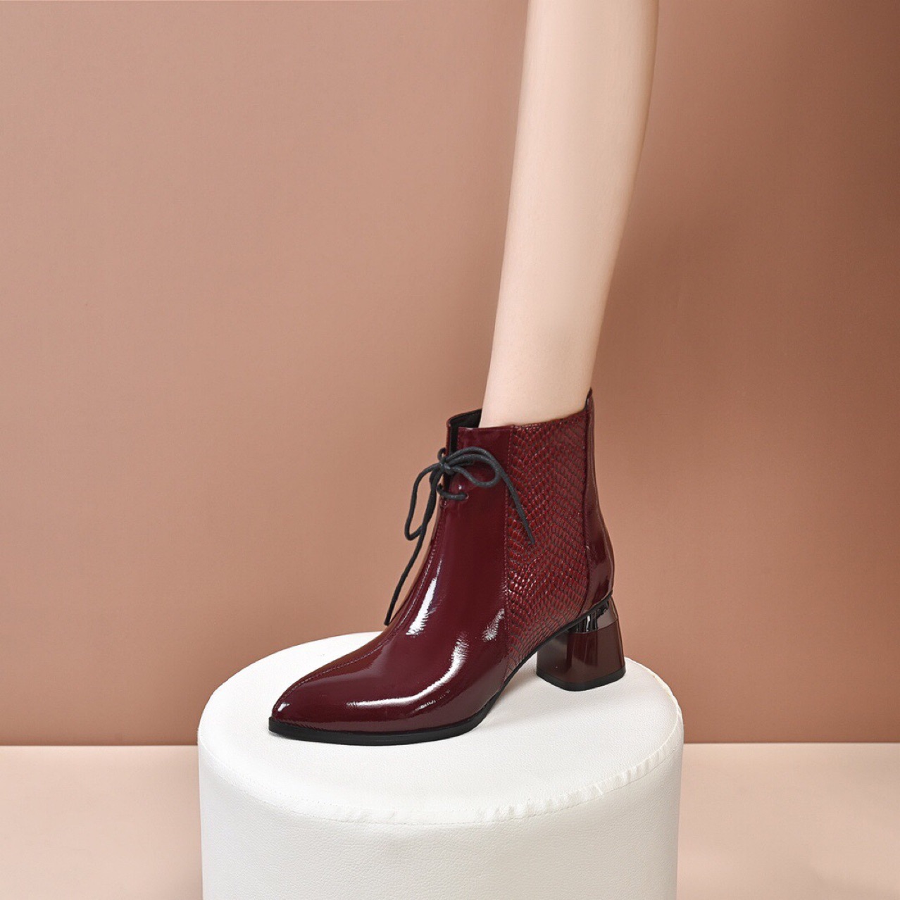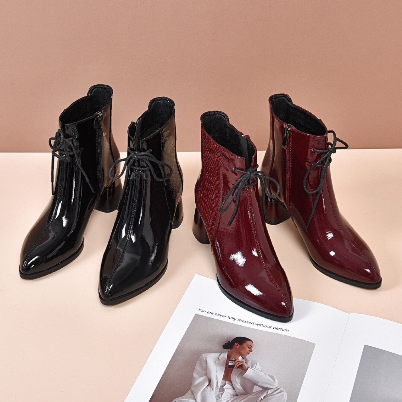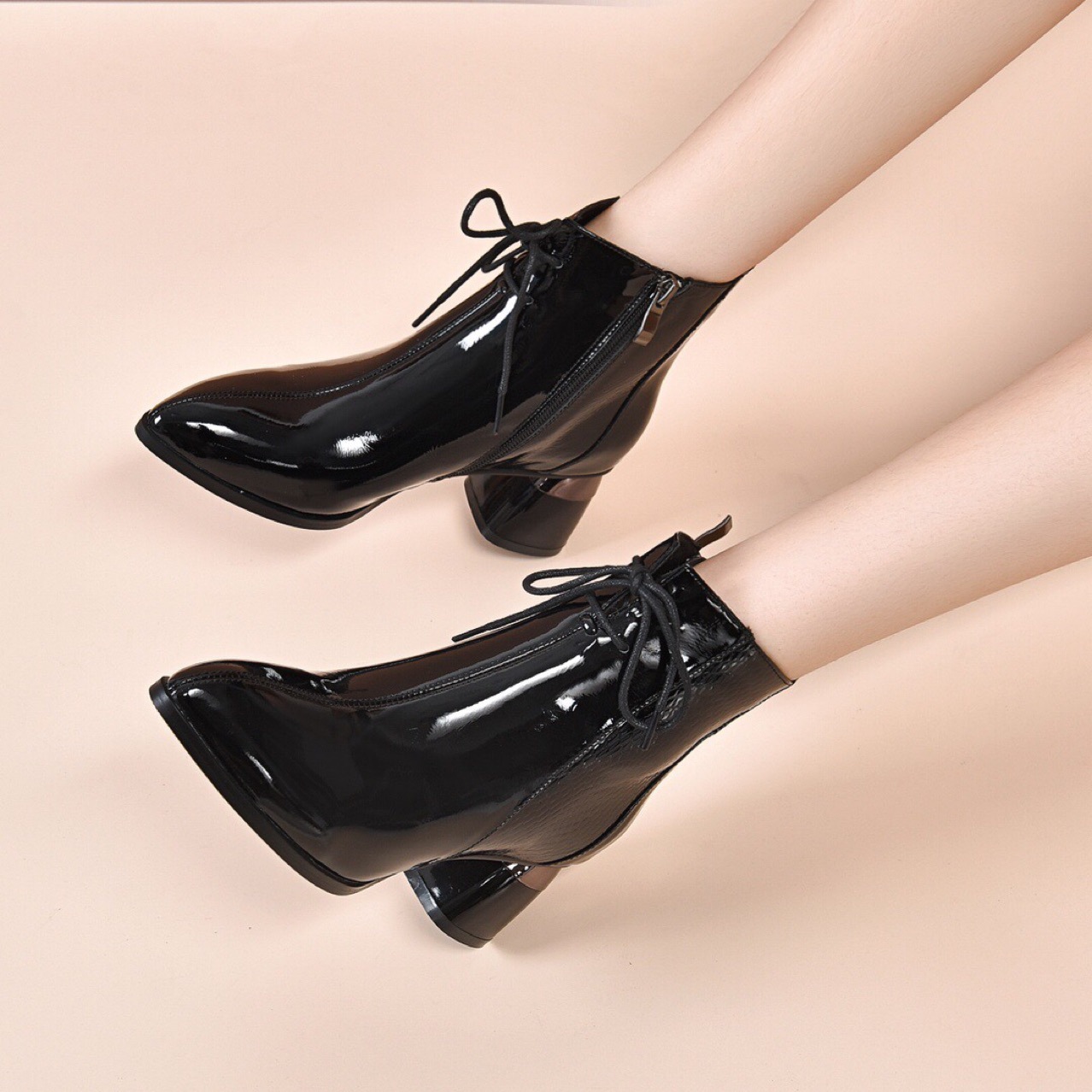 🔥【35-40】2024 jesienne i zimowe nowe krótkie buty ze szpiczastym noskiem, lakierowane na wysokim obcasie-3763037