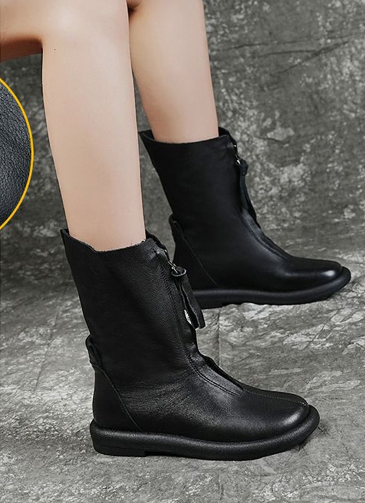🔥【35-40】2024 Nowe zimowe retro damskie wygodne oryginalne skórzane miękkie buty do połowy łydki-3811567