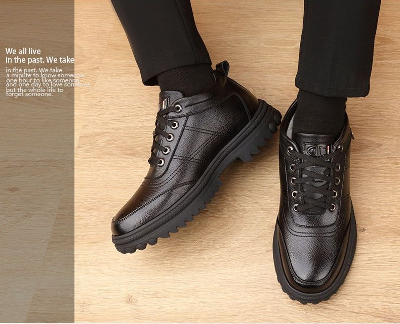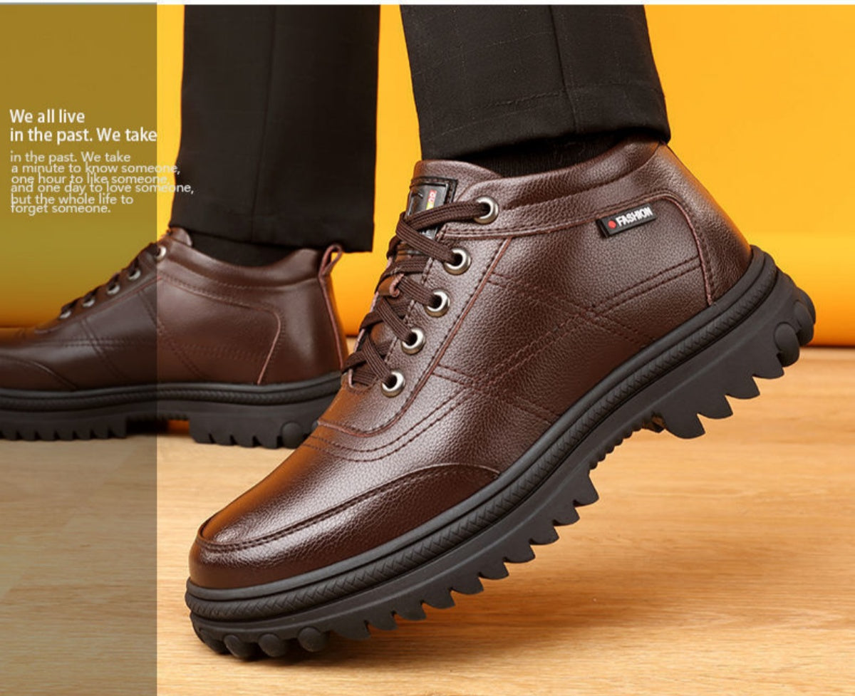 🔥【39-44】2025 Jesień i zima Nowe ciepłe męskie skórzane buty z grubą podeszwą