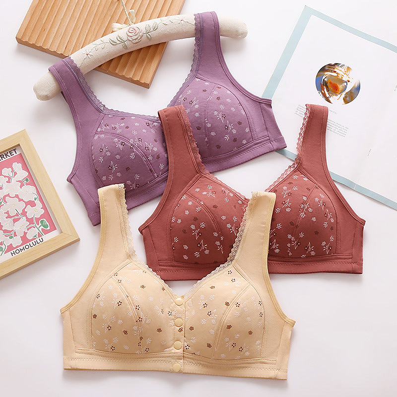 🔥【50% zniżki】🔥✨ Lekki i oddychający biustonosz bez fiszbin z nadrukiem i zapięciem na guziki z przodu