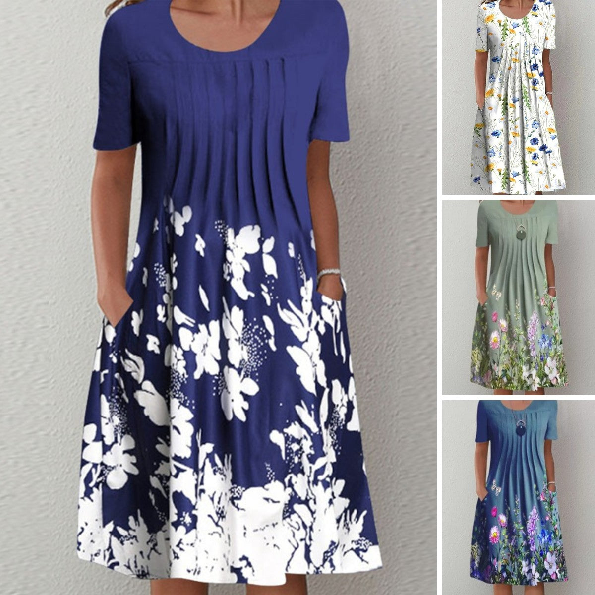😍🦋【40-100KG】2025 Wiosna i Lato Nowa Moda Damska Sukienka Z Okrągłym Dekoltem Nadrukowana