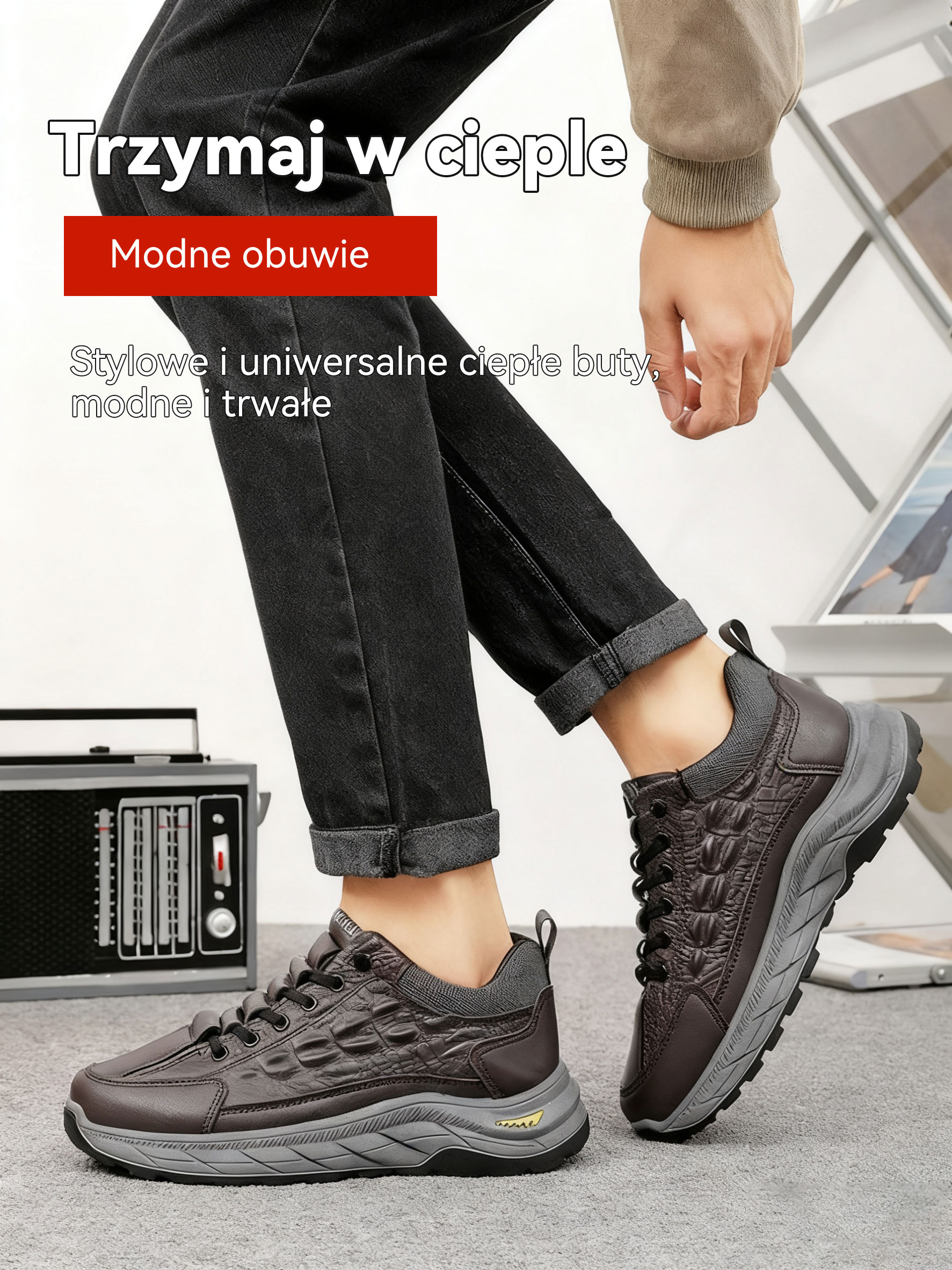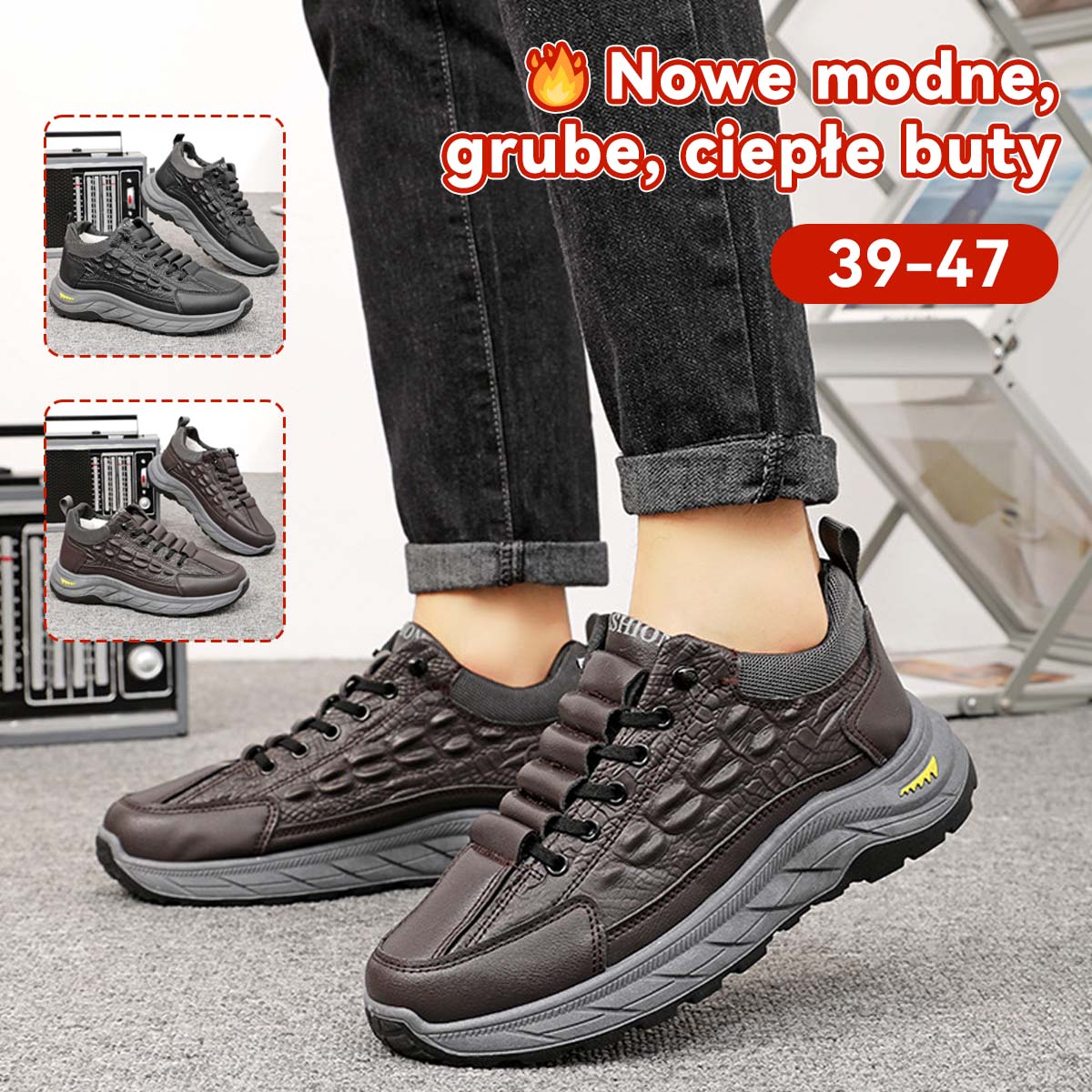 🥾Ciepłe, zimowe buty męskie z aksamitu, ze wzorem krokodyla, niezbędne podczas wypoczynku na świeżym powietrzu