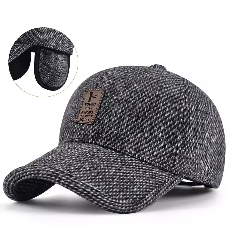 🧢Nowa jesienno-zimowa męska wełniana czapka z daszkiem chroniąca uszy-3766366