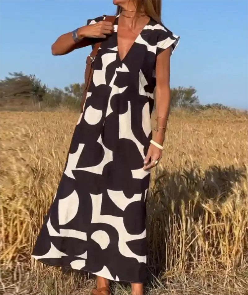 【S-3XL】Damska sukienka casual z geometrycznym blokiem kolorów-3681037
