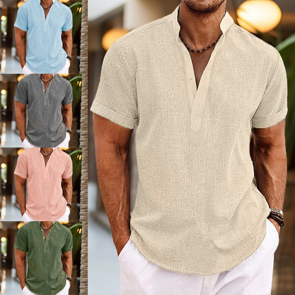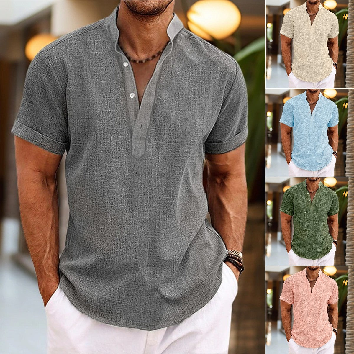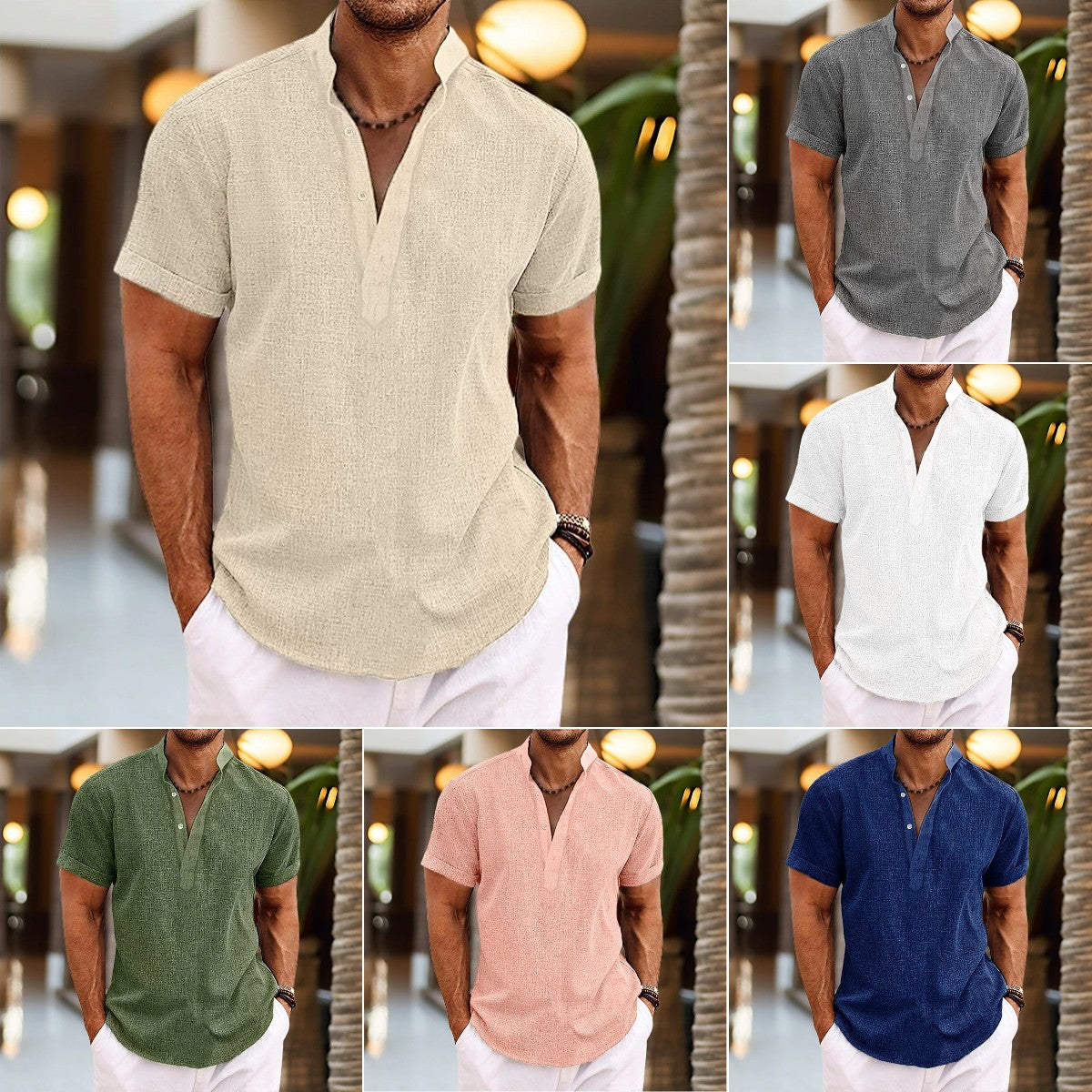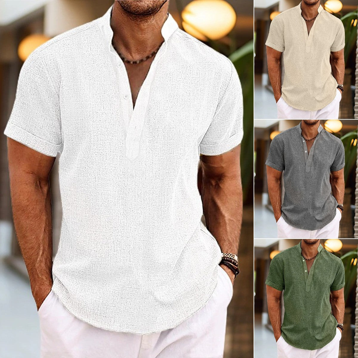 【S-3XL】Męska koszula z krótkim rękawem w jednolitym kolorze-3721655