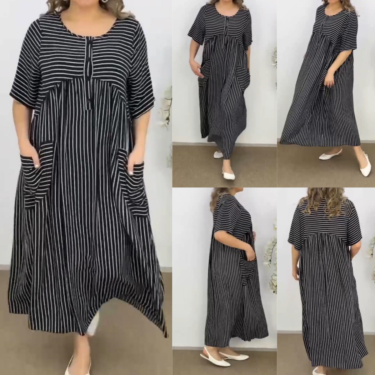 🤍🖤【S-5XL】2025 modna damska nowa duża luźna i wygodna letnia sukienka w paski, wygodna w noszeniu