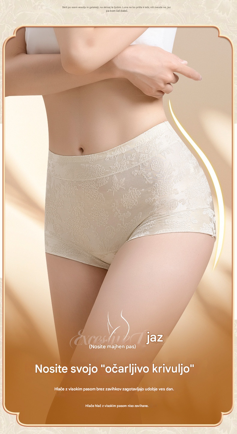 💖 【Komplet 5】(40-80 kg) Ženske žakard hlačke z visokim pasom in antibakterijskim učinkom, izdelane iz murvine svile 10A - posebej zasnovane za ženske, optično zgladijo boke in trebuh