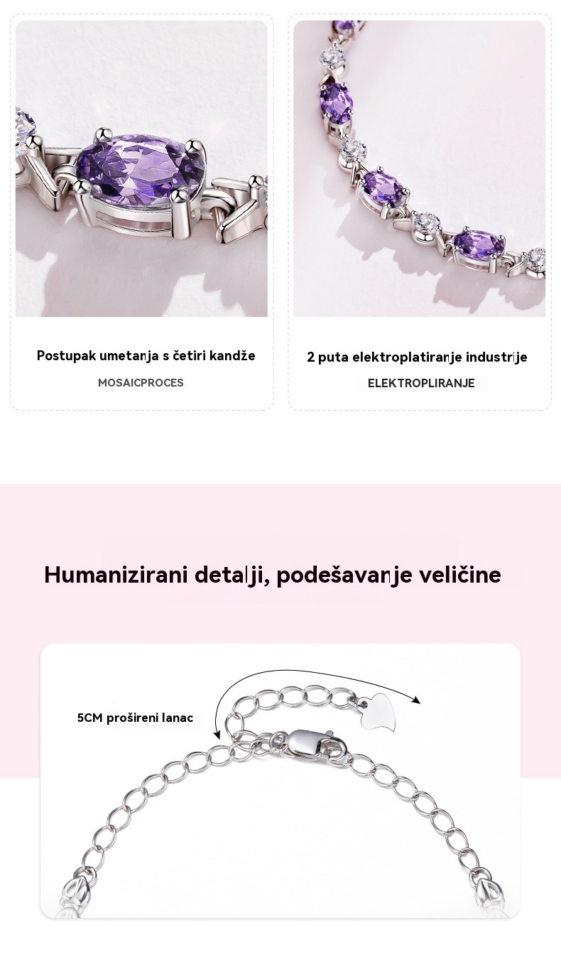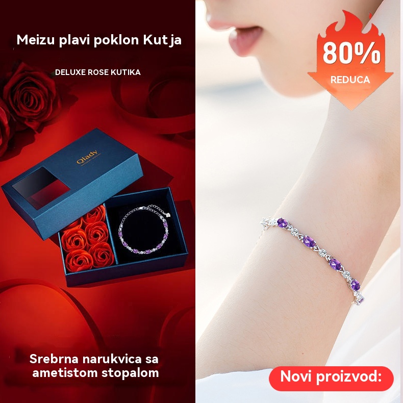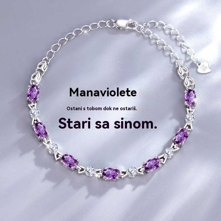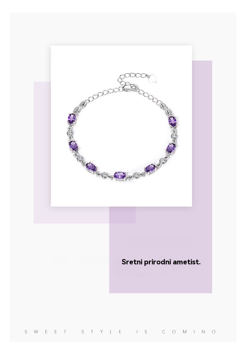 💞✨💜Elegantna, minimalistička, nišna ametist srebrna narukvica