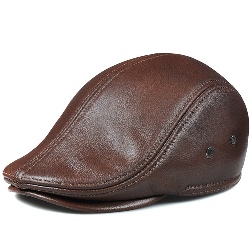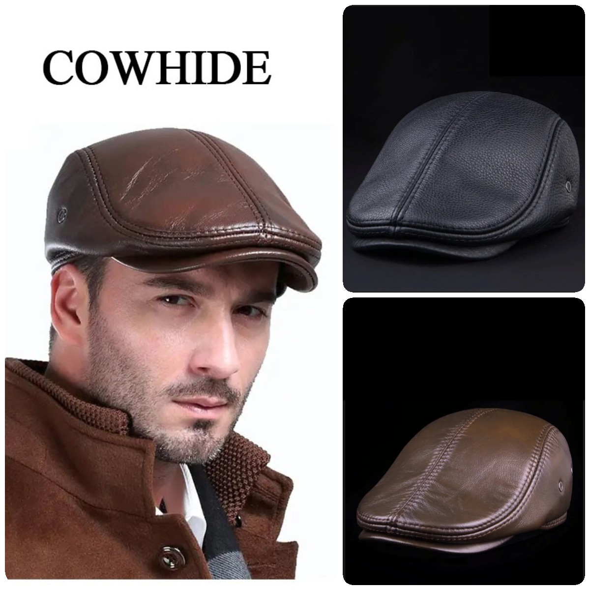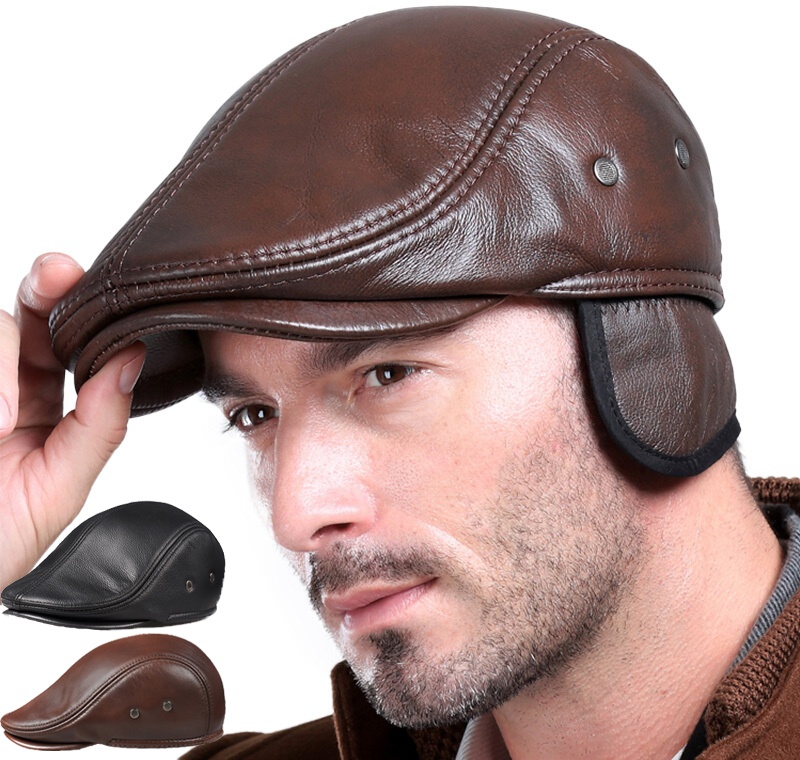 💥🧢【Plačilo ob dostavi】👍Moška usnjena kapa za aktivnosti na prostem, moška zimska baretka, topli glušniki iz 100 % kravje kože