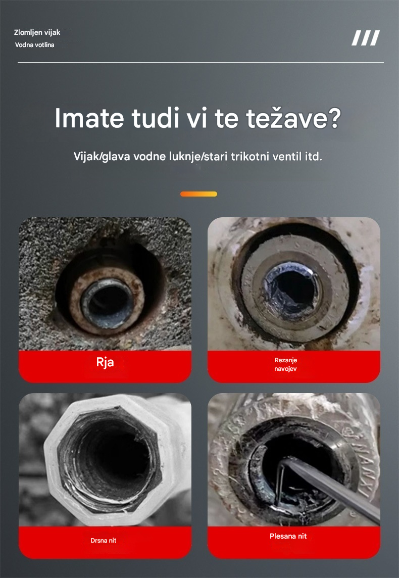 🔥【Kupite 1, dobite 1 gratis】Odstranjevalec pretrganega navoja za kotno pipo, univerzalna pipa